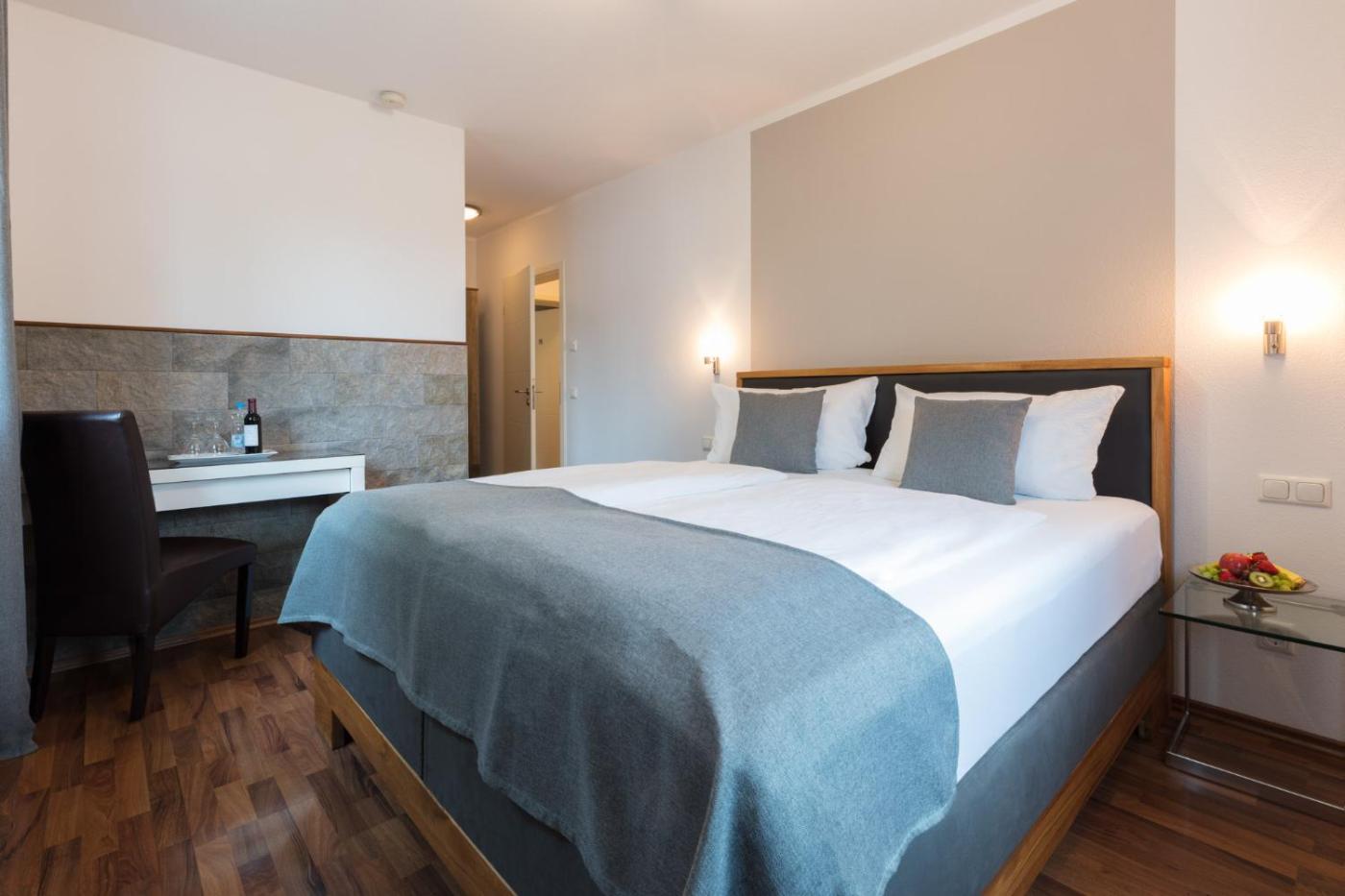 Comfort Doppelzimmer. Das Zimmer bietet Blick auf den Garten oder den Fluss Glonn. Es verfügt über Fußbodenheizung und eine kostenfreie Wasserflasche. ;