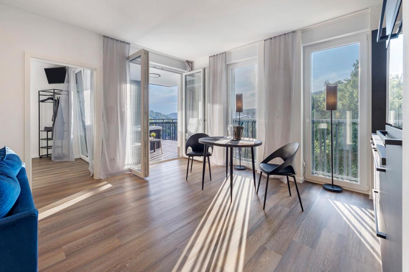 Superior Apartment mit 1 Schlafzimmer und Balkon. The sauna is the standout feature of this apartment. The apartment has 1 bedroom and 1 bathroom with a shower and free toiletries. Meals can be prepared in the well-fitted kitchen, which is fitted with a dishwasher, kitchenware, a microwave and a toaster. Boasting a balcony, this apartment also offers a private entrance, a coffee machine and a TV with streaming services. The unit has 1 bed.