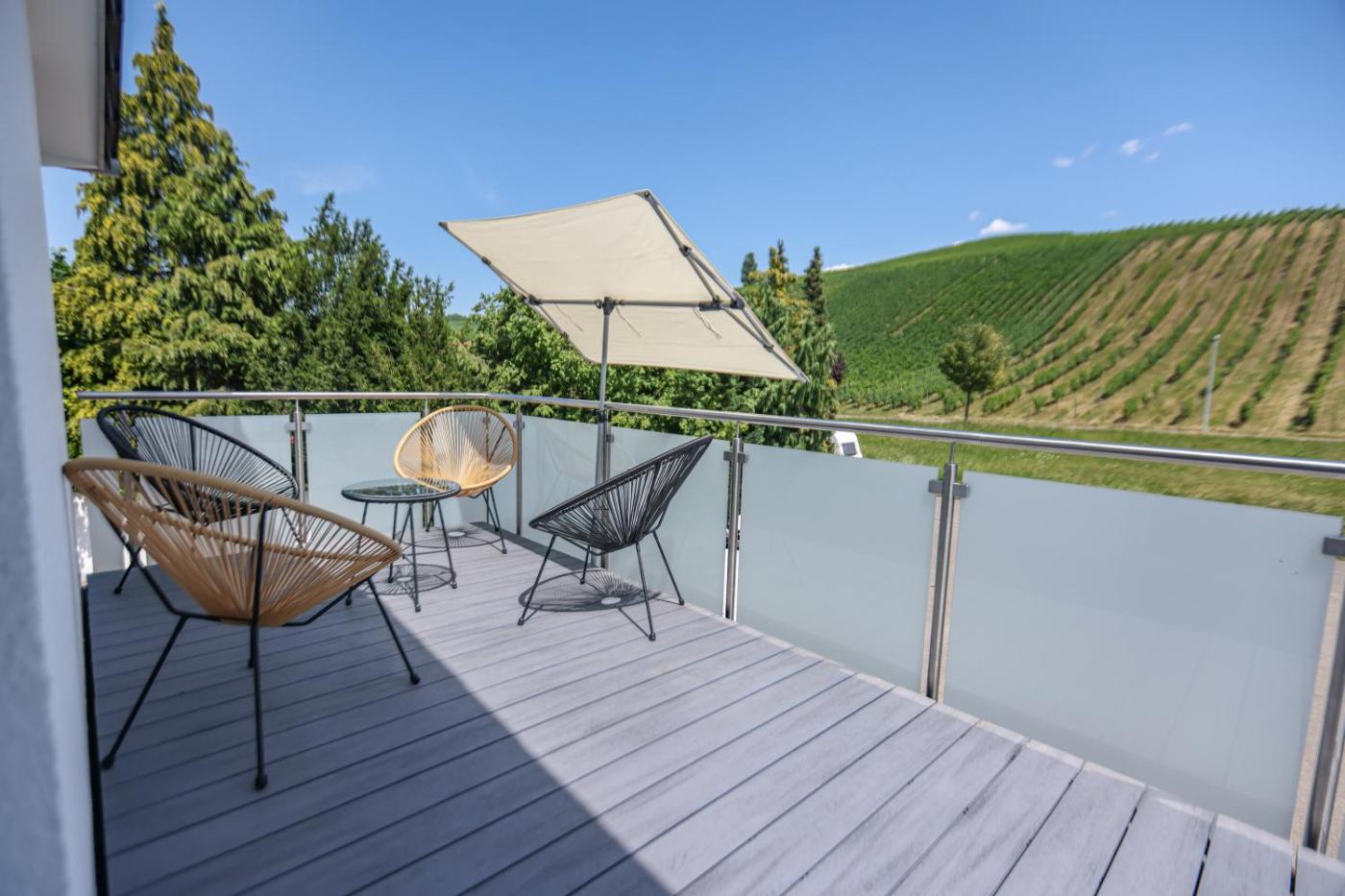 Die Gäste können in der Unterkunft Penthouse-Wohnung I 100 qm I Blick auf die Weinreben I Nespresso I EMMA Matratzen eine Sonnenterrasse nutzen.
