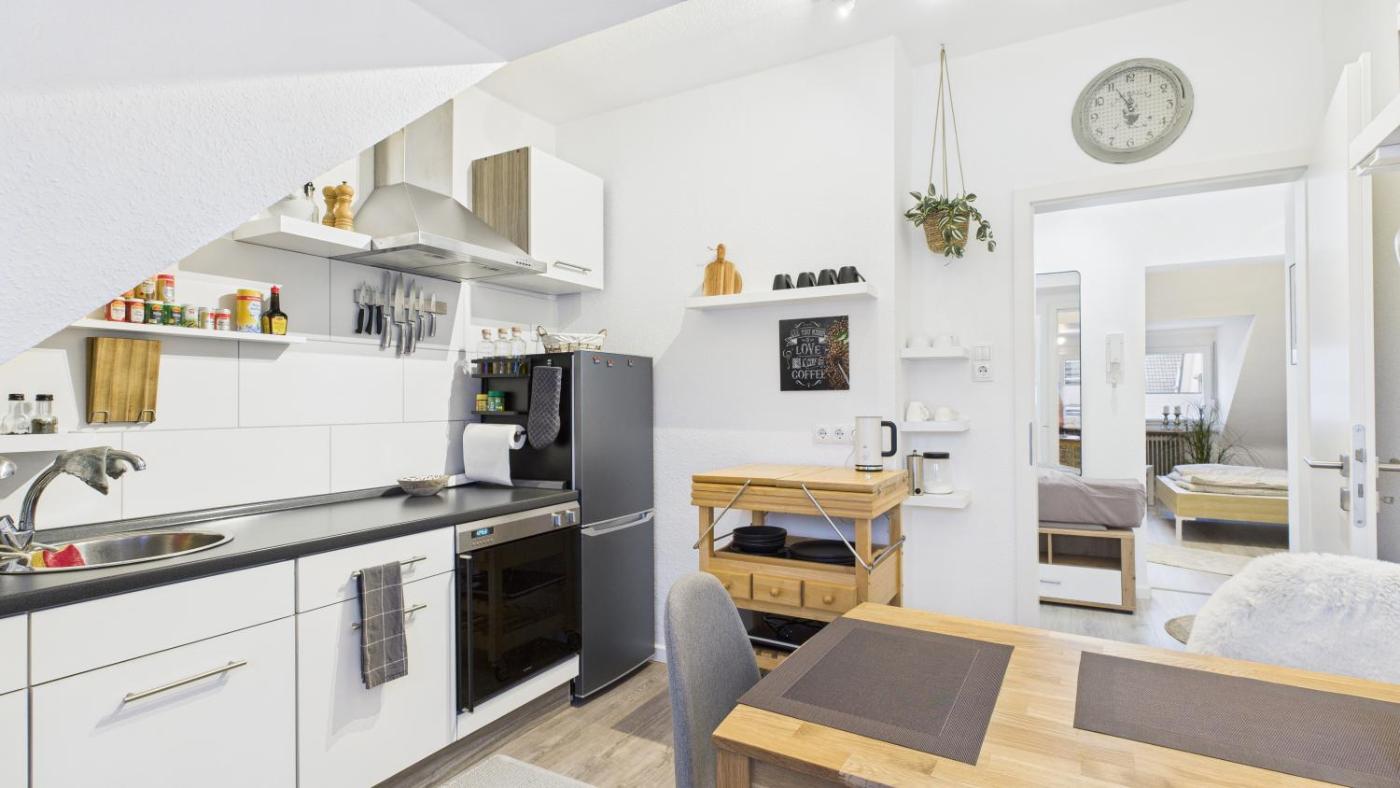 Apartment mit 1 Schlafzimmer. The apartment features 1 bedroom, 1 bathroom with a bath and a kitchen. In the kitchen, guests will find a stovetop, a refrigerator and an oven. The apartment provides a flat-screen TV with streaming services, a coffee machine, a wardrobe, tumble dryer as well as garden views. The unit offers 1 bed.