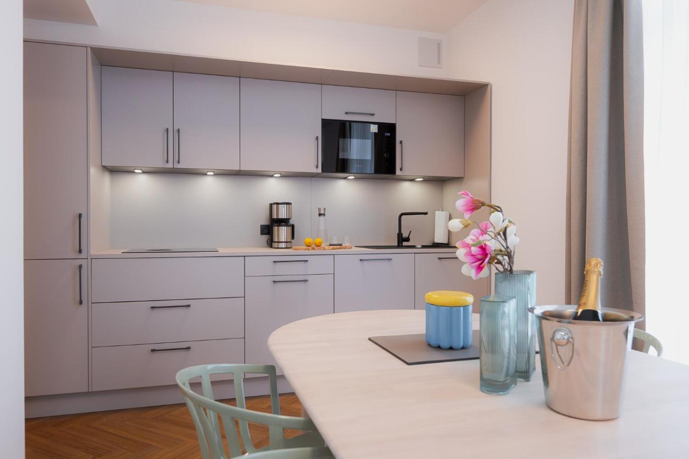 Superior Apartment mit Stadtblick. Featuring a private entrance, this spacious apartment also is comprised of 1 separate bedroom and 1 bathroom with a shower and a hairdryer. Guests can make meals in the kitchen that is fitted with a dishwasher, kitchenware, a microwave and a toaster. This apartment offers a coffee machine, a TV with cable channels and mountain views. The unit offers 1 bed. ;