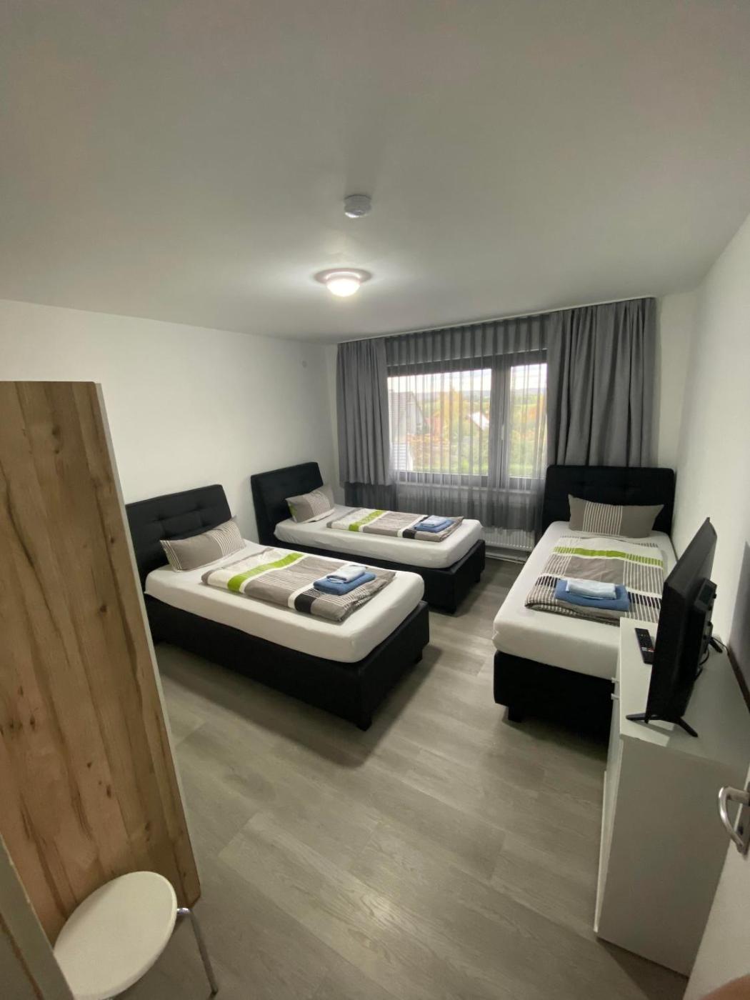 Doppel- oder Zweibettzimmer. The spacious twindouble room provides a dining area, an electric kettle, as well as a shared bathroom featuring a walk-in shower and a hairdryer. Guests can make meals in the kitchen that comes with a stovetop, a refrigerator, a dishwasher and kitchenware. The twindouble room features a flat-screen TV, parquet floors, a tiled floor, heating as well as garden views. The unit offers 2 beds. ;