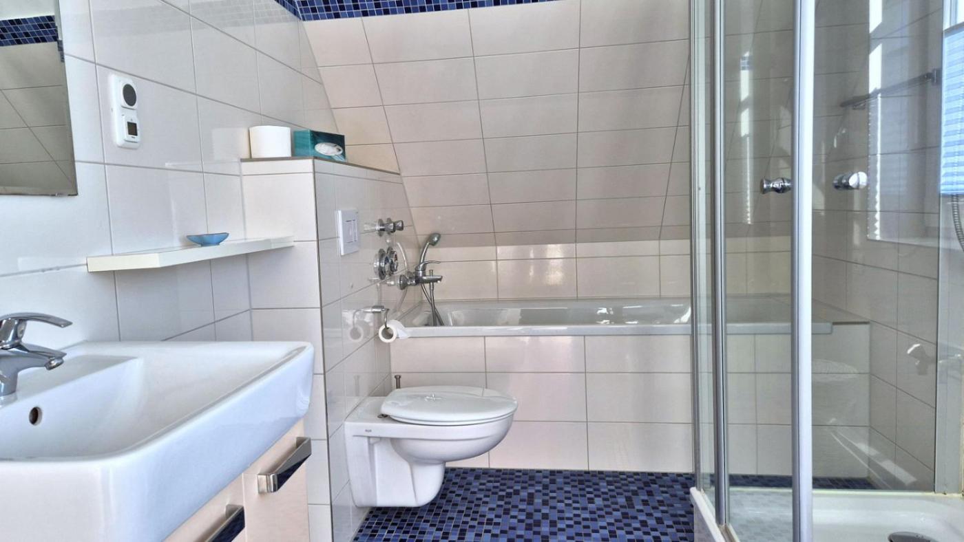 Apartment mit Balkon. This apartment offers a fireplace. This spacious apartment comprises 1 living room, 2 separate bedrooms and 1 bathroom with a shower and a hairdryer. Guests can make meals in the kitchen that comes with a stovetop, a refrigerator, a dishwasher and kitchenware. Featuring a balcony with garden views, this apartment also provides a tea and coffee maker and a TV with cable channels. The unit offers 3 beds.