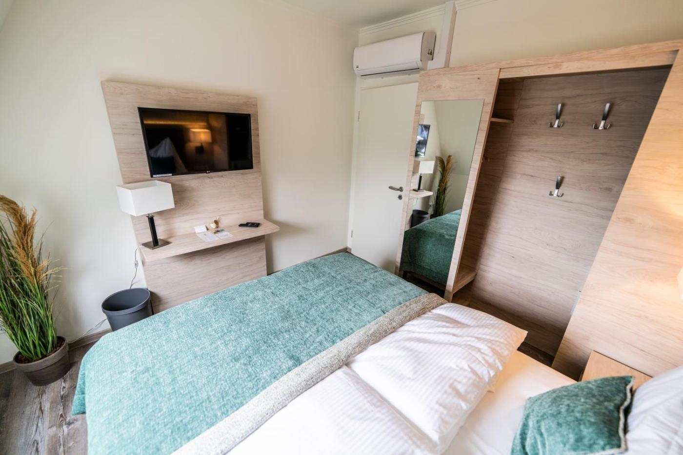 Kleines Doppelzimmer. The double room offers air conditioning, a minibar, as well as a private bathroom featuring a shower and a hairdryer. This double room features a tea and coffee maker, flat-screen TV, a quiet street view, as well as winechampagne for guests. The unit offers 1 bed.