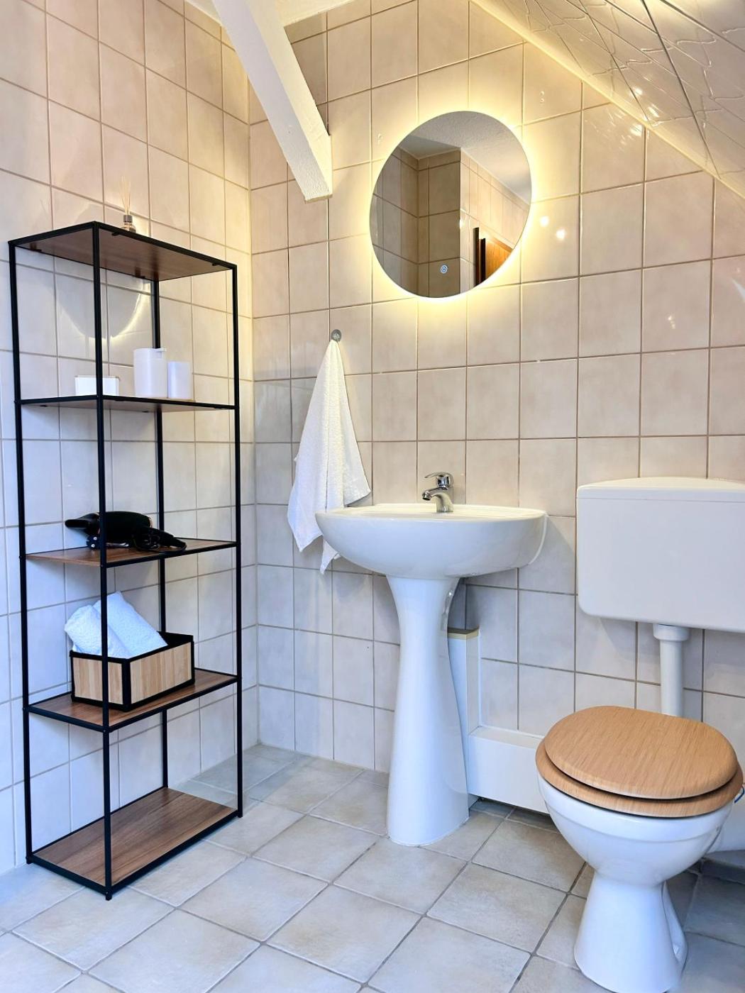 Apartment mit 1 Schlafzimmer. Guests can make meals in the kitchen that has a stovetop, a refrigerator, kitchenware and an oven. The spacious apartment features a washing machine, a tea and coffee maker, a seating area, a dining area and a flat-screen TV with streaming services. The unit has 2 beds.
