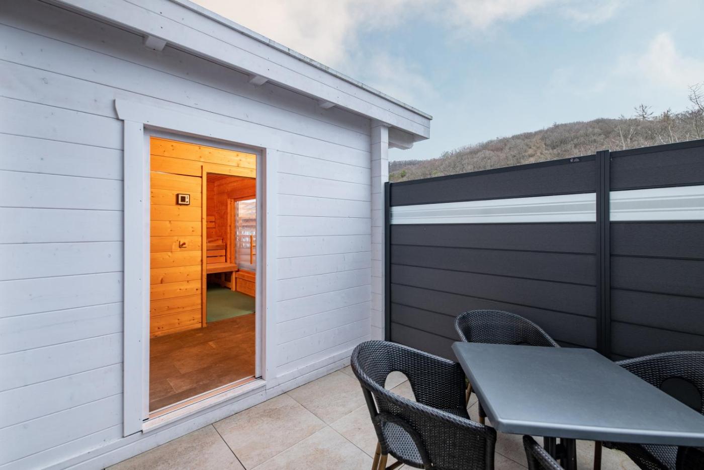 Der Wellnessbereich im Göbels Seehotel Diemelsee in Heringhausen verfügt über eine Außensauna, verschiedene Bäder und einen Bereich zum Sonnenbaden. Zum Angebot zählen außerdem Schönheitsanwendungen und Massagen.