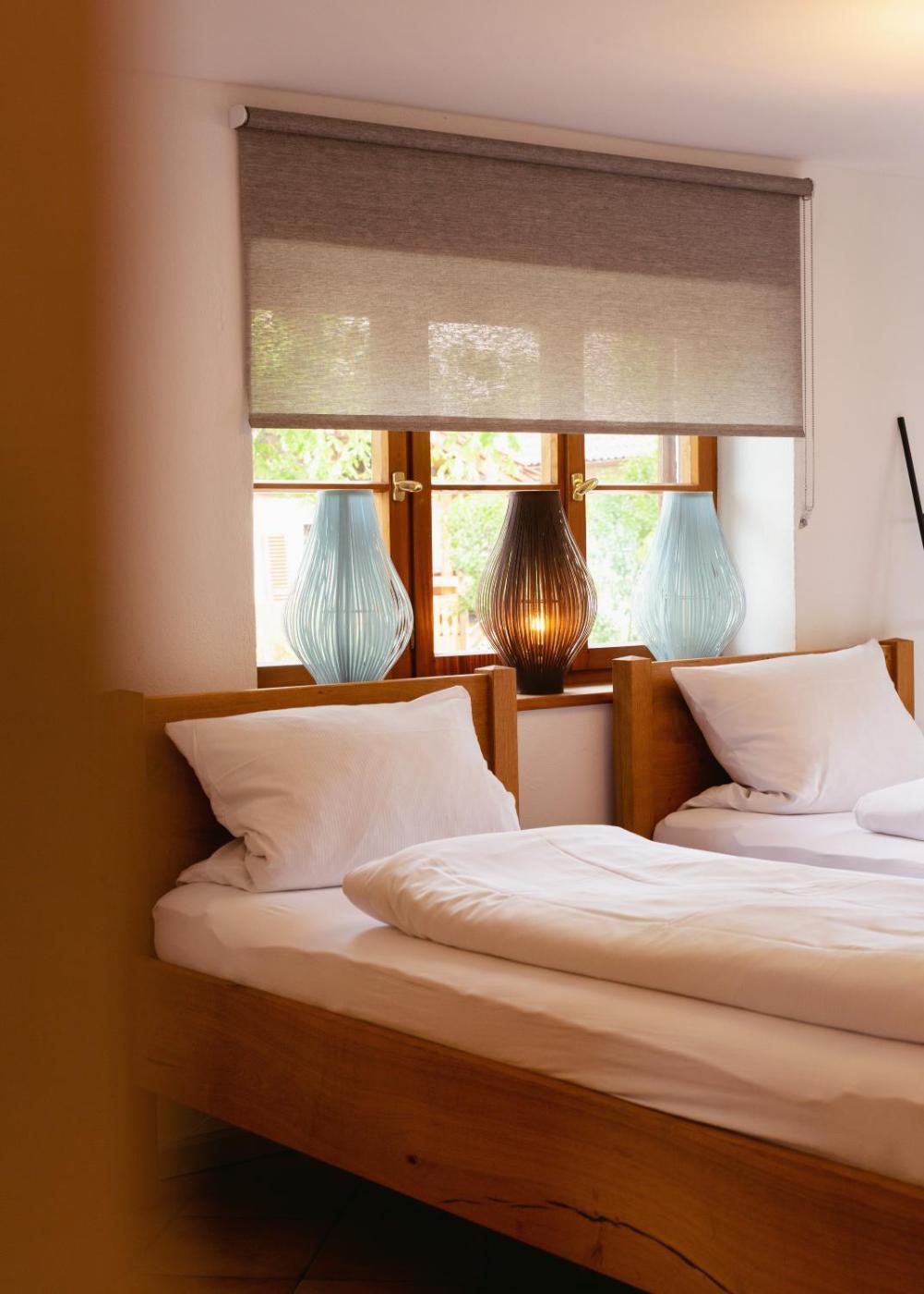 Die Zimmer im Cottage-Stil im Strandhotel SüdSee Diessen am Ammersee sind mit Holzmöbeln eingerichtet. Jedes Zimmer verfügt über ein eigenes Bad und einen TV.