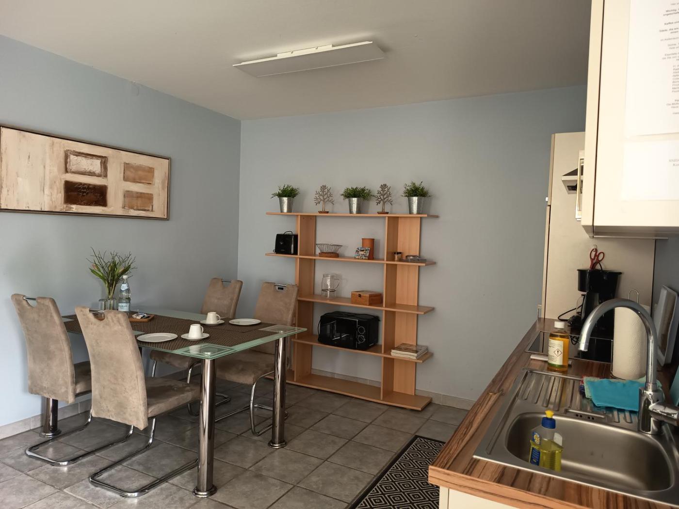 Apartment mit Gartenblick. The fireplace is the standout feature of this apartment. The fully equipped kitchen features a stovetop, a refrigerator, a dishwasher and kitchenware. The apartment has a washing machine, a private entrance, a tea and coffee maker as well as a terrace with garden views. The unit has 1 bed.