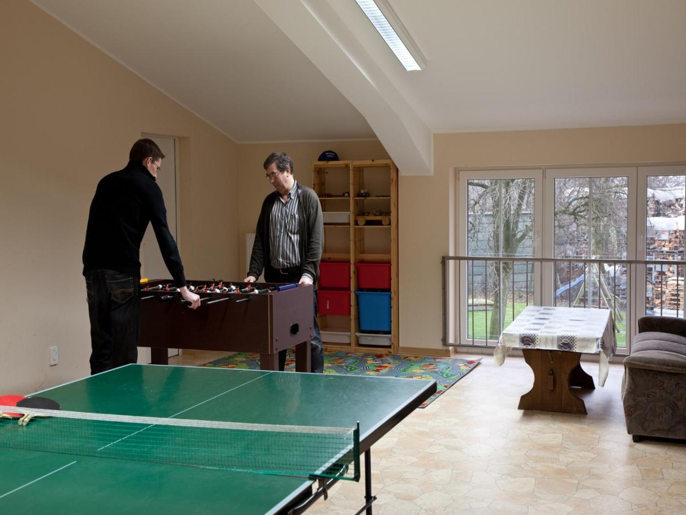 Gäste können im Innenpool schwimmen, Fahrradfahren oder im Garten entspannen.