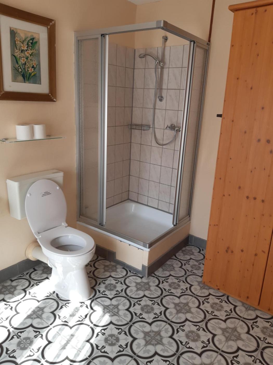 Doppelzimmer mit eigenem Bad. The double room provides parquet floors, a tiled floor, as well as a private bathroom featuring a shower and a hairdryer. This double room features a wardrobe, flat-screen TV with satellite channels, mountain views, as well as winechampagne for guests. The unit offers 1 bed. ;