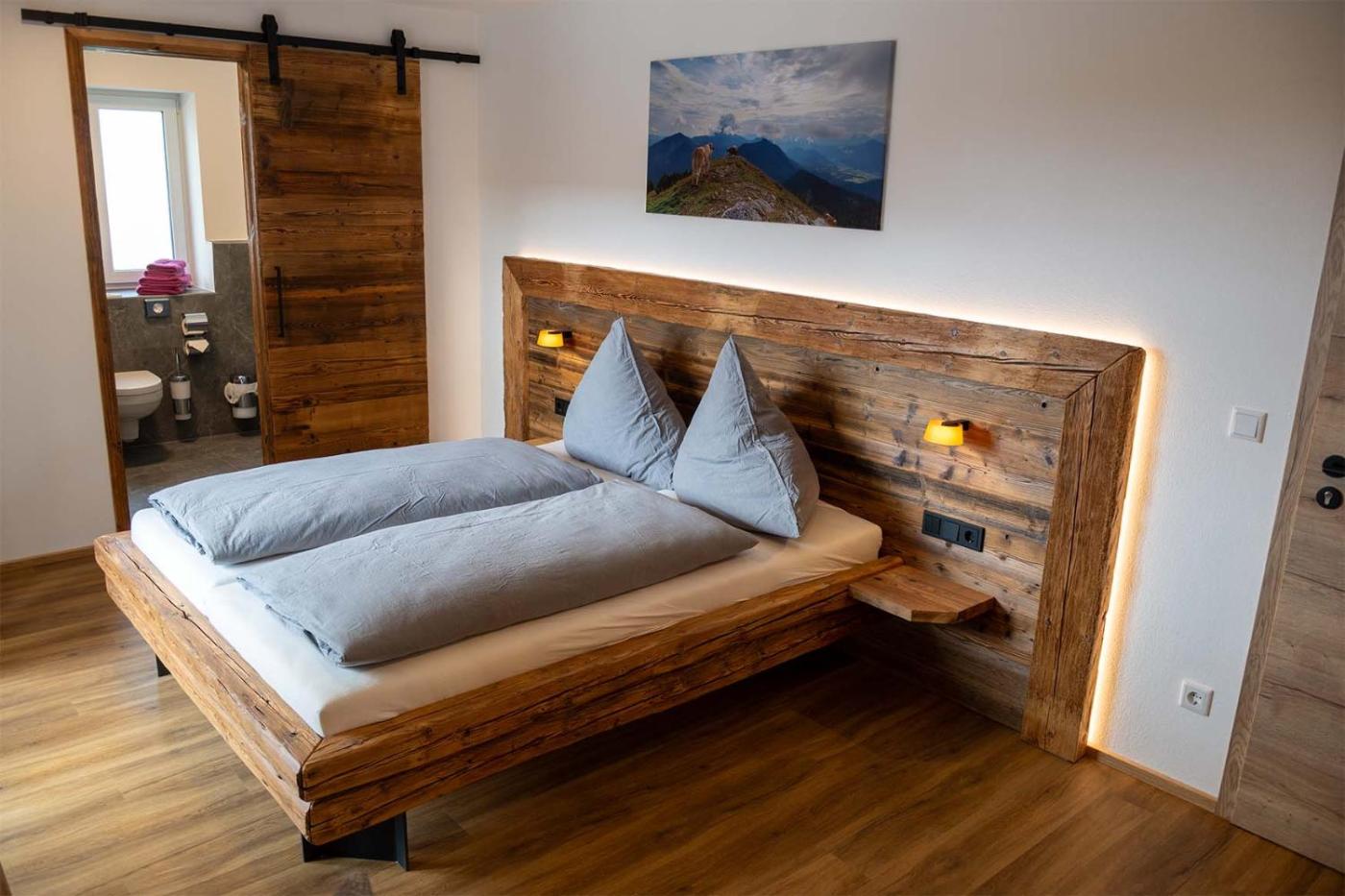 Deluxe Zimmer mit Kingsize-Bett. Dieses Doppelzimmer verfügt über einen Flachbild-Sat-TV, ein eigenes Bad sowie einen Balkon mit Bergblick. Die Wohneinheit ist mit 1 Bett ausgestattet.