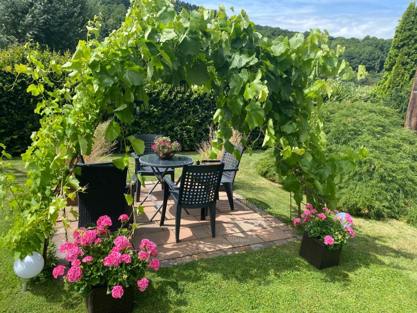 Apartment mit 1 Schlafzimmer. Diese Ferienwohnung verfügt über einen eigenen Eingang, 1 Wohnzimmer, 1 separates Schlafzimmer sowie 1 Bad mit einer Dusche und einem Haartrockner. In der komplett ausgestatteten Küche erwarten Sie ein Kochfeld, ein Kühlschrank, ein Geschirrspüler und Küchenutensilien. Darüber hinaus bietet Ihnen die Ferienwohnung eine Terrasse mit Gartenblick, Tee- und Kaffeezubehör sowie einen Flachbild-Sat-TV. In dieser Wohneinheit befindet sich 1 Bett.