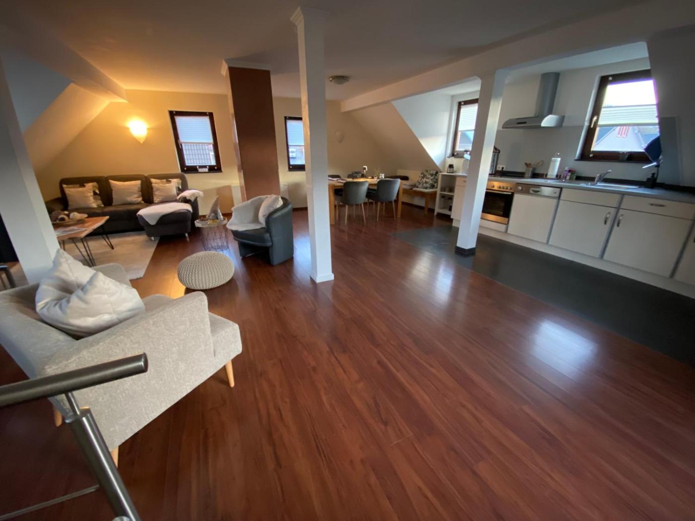 Maisonette-Apartment. Featuring a private entrance, this spacious apartment also is comprised of 1 living room, 2 separate bedrooms and 1 bathroom with a shower. The well-fitted kitchen features a stovetop, a refrigerator, a dishwasher and kitchenware. Boasting a terrace with lake views, this apartment also offers a tea and coffee maker and a flat-screen TV with satellite channels. The unit offers 2 beds. ;