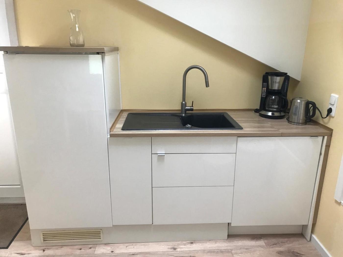 Deluxe Einzelzimmer. The single room offers heating, as well as a private bathroom featuring a shower. Meals can be prepared in the well-fitted kitchenette, which comes with a stovetop, a refrigerator, kitchenware and a microwave. The single room provides a coffee machine, a dining area, a wardrobe, tumble dryer and a flat-screen TV with satellite channels. The unit offers 1 bed. ;