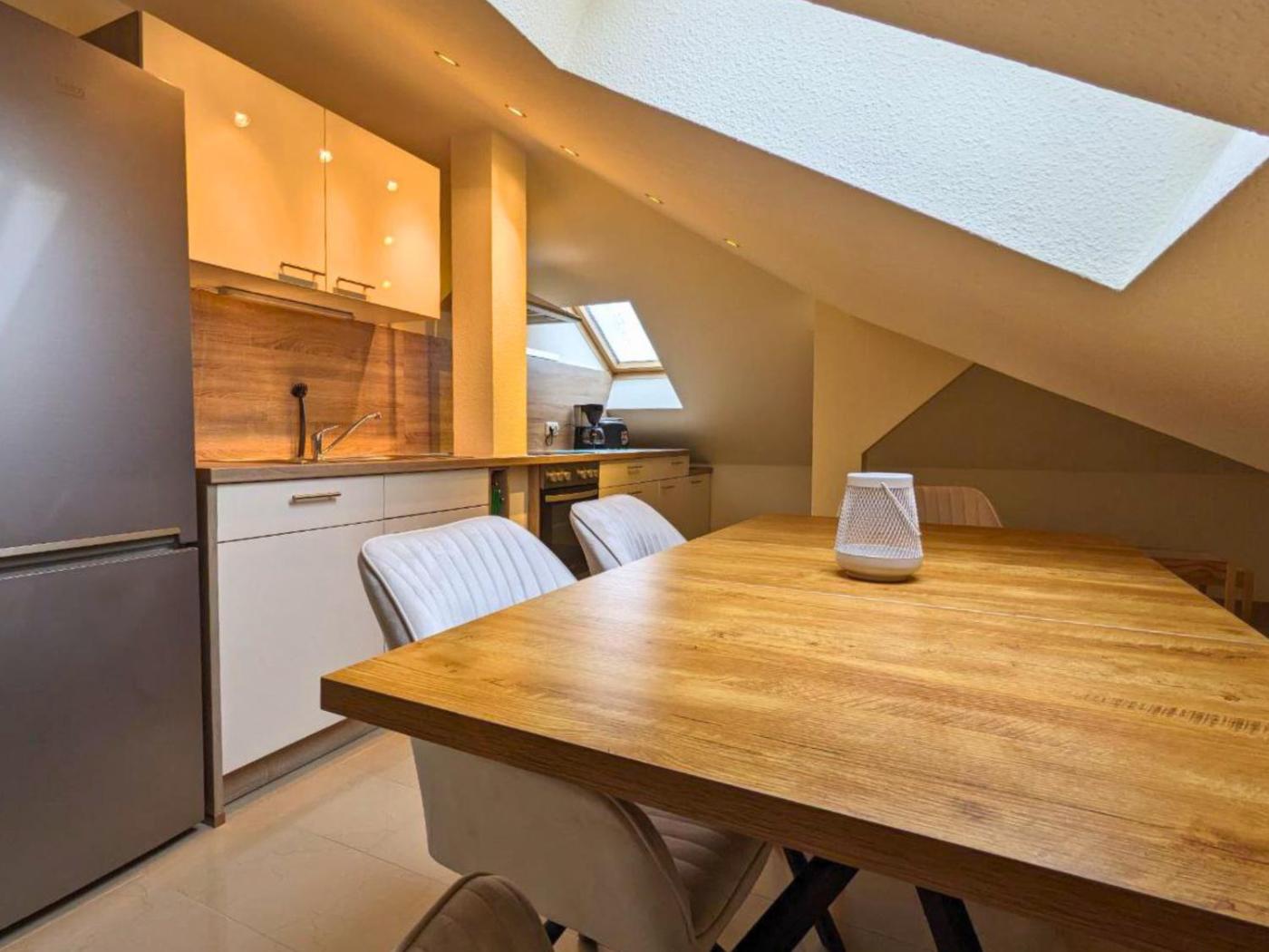 Diese Ferienwohnung besteht aus 1 Schlafzimmer, einem Wohnzimmer, einer voll ausgestatteten Küche mit einem Kühlschrank und einer Kaffeemaschine sowie 1 Badezimmer mit einer Dusche und einer Badewanne. In dieser Ferienwohnung werden Handtücher und Bettwäsche angeboten.