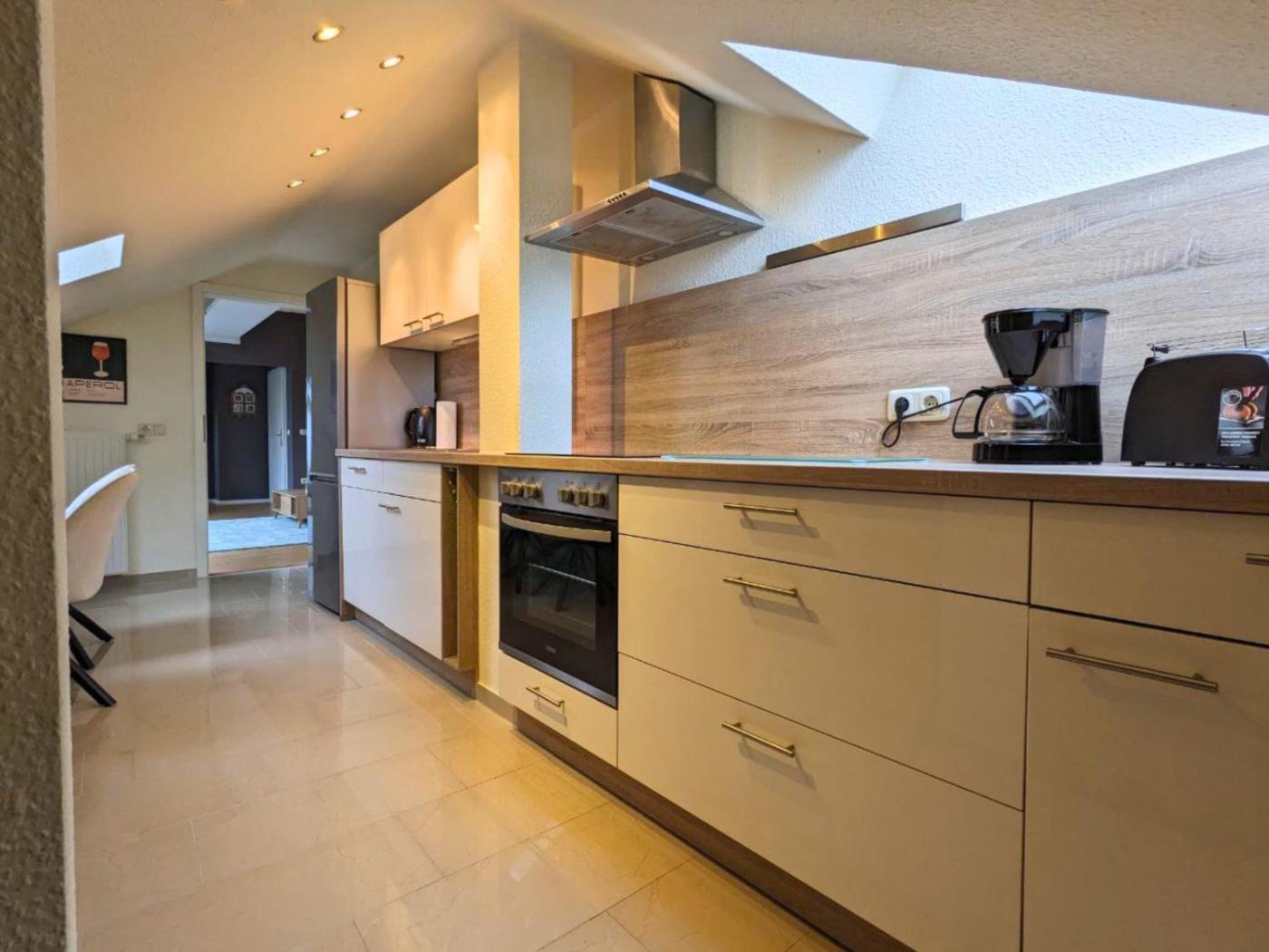 Apartment mit 1 Schlafzimmer. This apartment is comprised of 1 living room, 1 separate bedroom and 1 bathroom with a bath and a shower. In the kitchen, guests will find a stovetop, a refrigerator, a dishwasher and kitchenware. The apartment features parquet floors, a seating area with a flat-screen TV, a coffee machine, a dining area, as well as a wardrobe. The unit offers 2 beds.