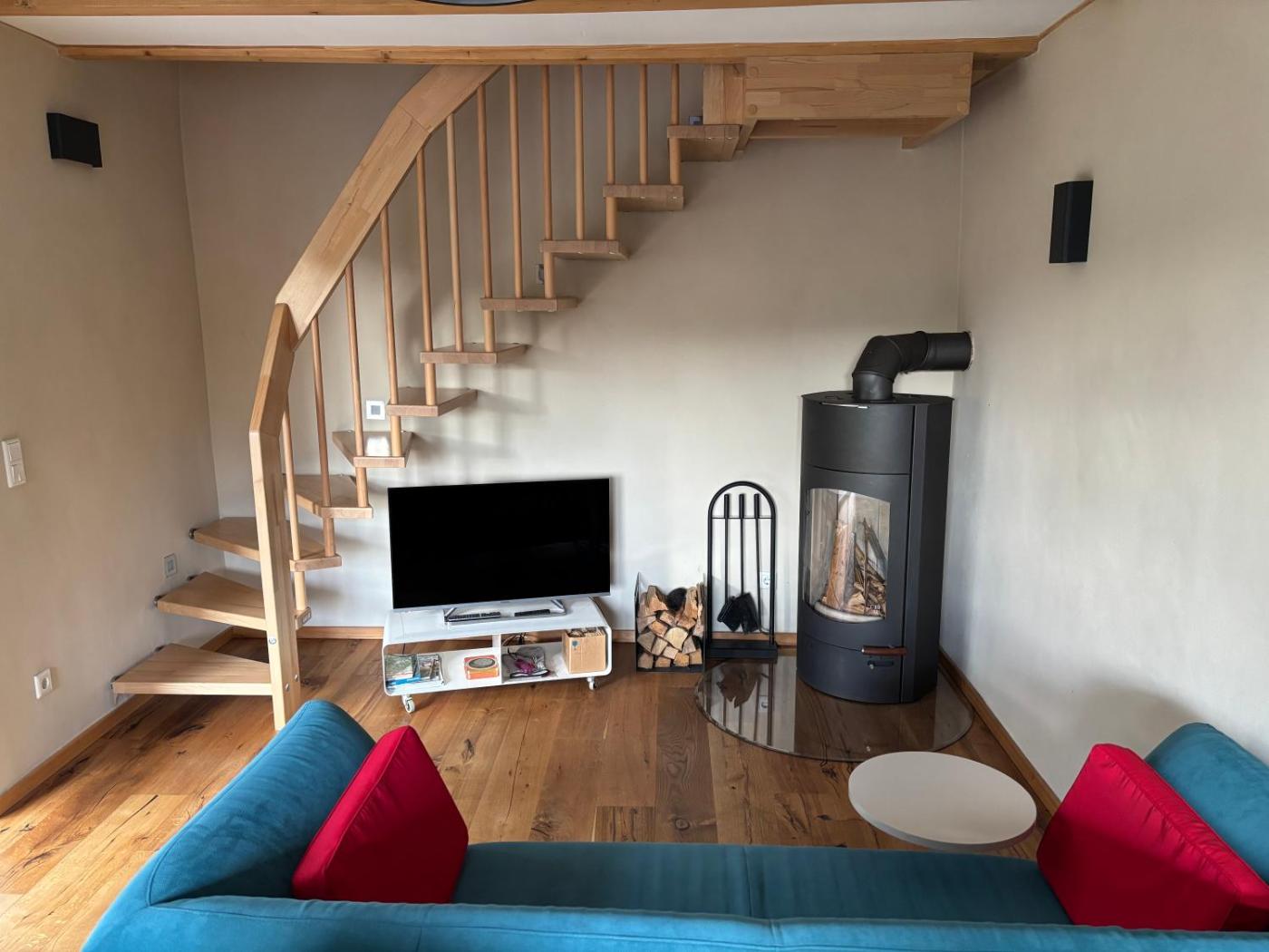 Haus mit 2 Schlafzimmern. This holiday home offers a fireplace. The fully equipped kitchen features a stovetop, a refrigerator, a dishwasher and an oven. The holiday home provides a flat-screen TV, a washing machine, a tea and coffee maker and heating. The unit offers 3 beds.