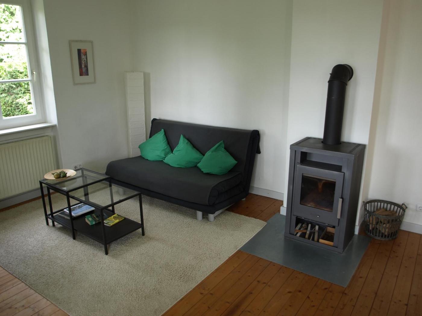 Apartment mit Balkon. The fireplace is a top feature of this apartment. Boasting a private entrance, this spacious apartment also includes 1 living room, 2 separate bedrooms and 1 bathroom with a shower. In the fully equipped kitchen, guests will find a stovetop, a refrigerator, a dishwasher and kitchenware. Featuring a terrace with garden views, this apartment also offers a tea and coffee maker and a flat-screen TV with satellite channels. The unit has 3 beds.