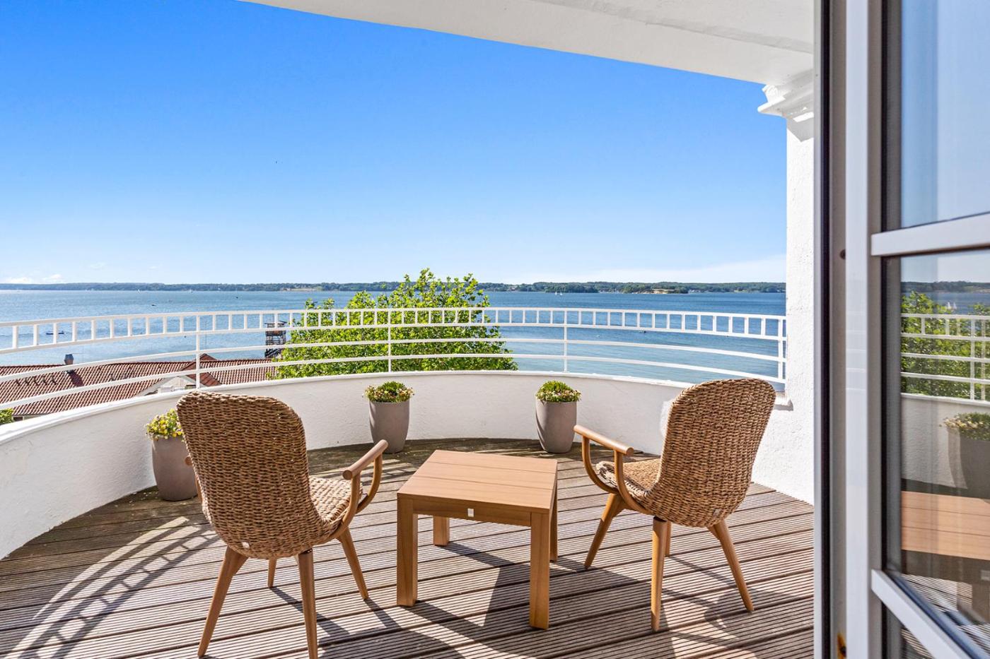 Premium Doppelzimmer mit Meerblick. Zur Ausstattung gehören ein TV, eine Minibar, kostenfreies Kaffee- und Teezubehör, kostenfreies WLAN und ein eigenes Bad. Dieses Zimmer ist sehr geräumig und bietet einen Blick auf die Flensburger Förde. ;
