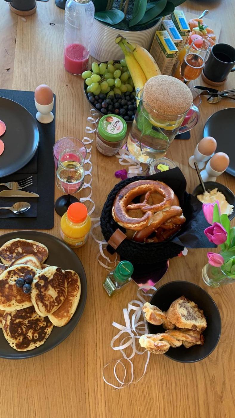 Gäste der Unterkunft BergChaletWeitblick können ein als Buffet angebotenes Frühstück genießen.