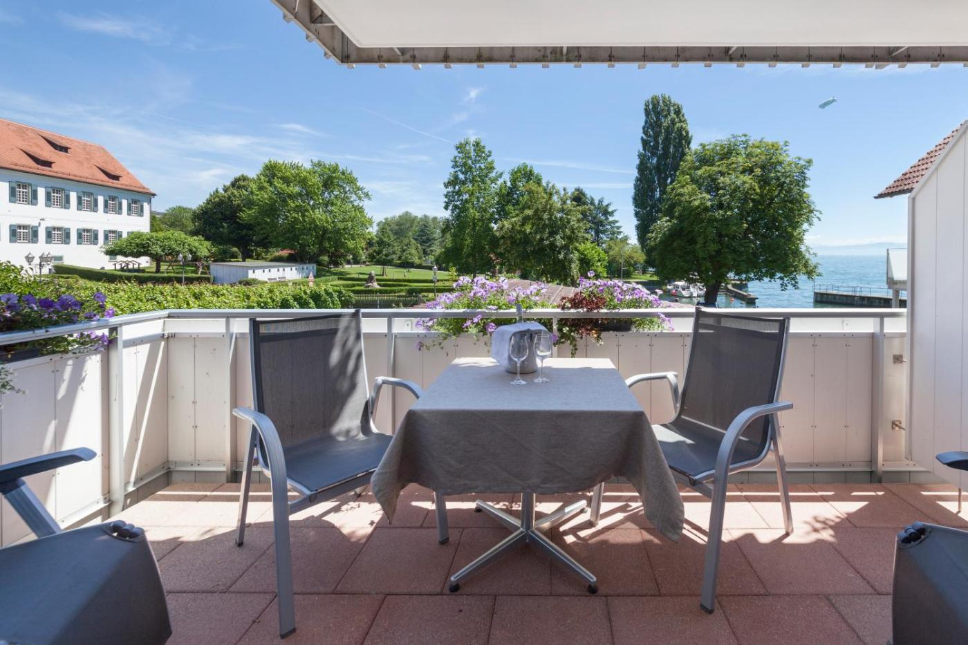 Dieses 4-Sterne-Superior-Hotel liegt direkt am Bodensee und bietet Nichtraucherzimmer mit Balkon. Den Fährhafen Hagnau erreichen Sie in 5 Gehminuten.