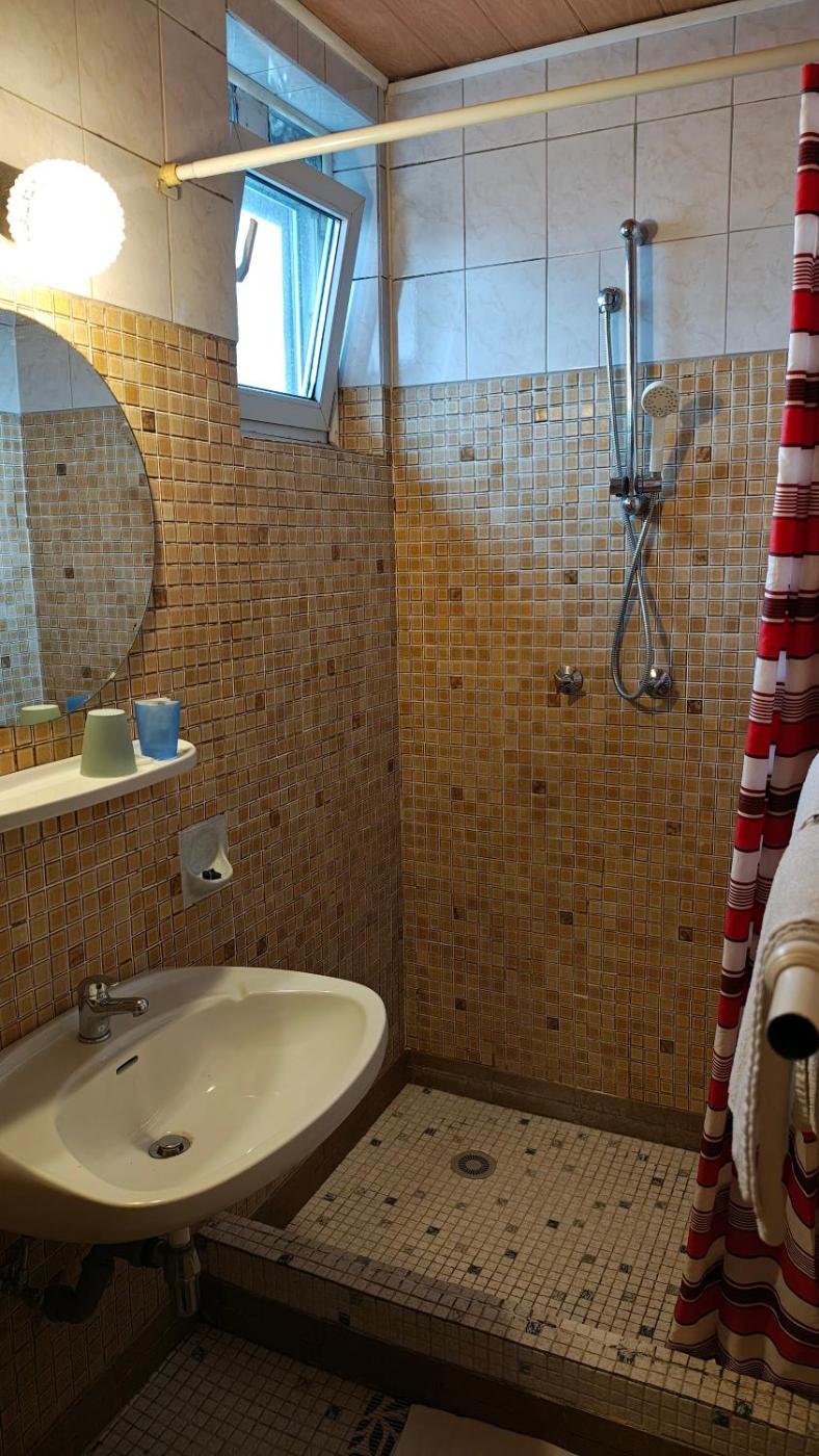 Doppelzimmer mit eigenem Bad. Providing free toiletries, this double room includes a private bathroom with a bath and a shower. The double room provides a wardrobe, a carpeted floor, heating and a flat-screen TV with satellite channels. The unit offers 10 beds. ;