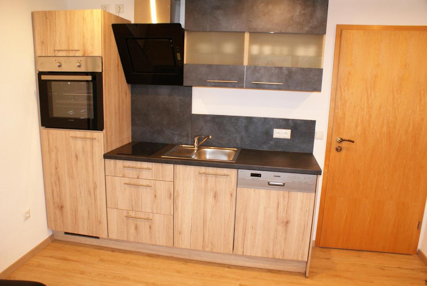 Einige Wohneinheiten haben außerdem eine Küchenzeile ausgestattet mit einem Kühlschrank, einem Geschirrspüler und einem Ofen.