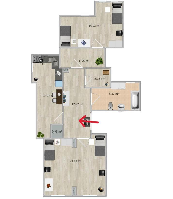 Apartment. The well-fitted kitchen features a refrigerator, kitchenware, an oven and a microwave. A washing machine, a private entrance and a coffee machine are featured in this spacious apartment.