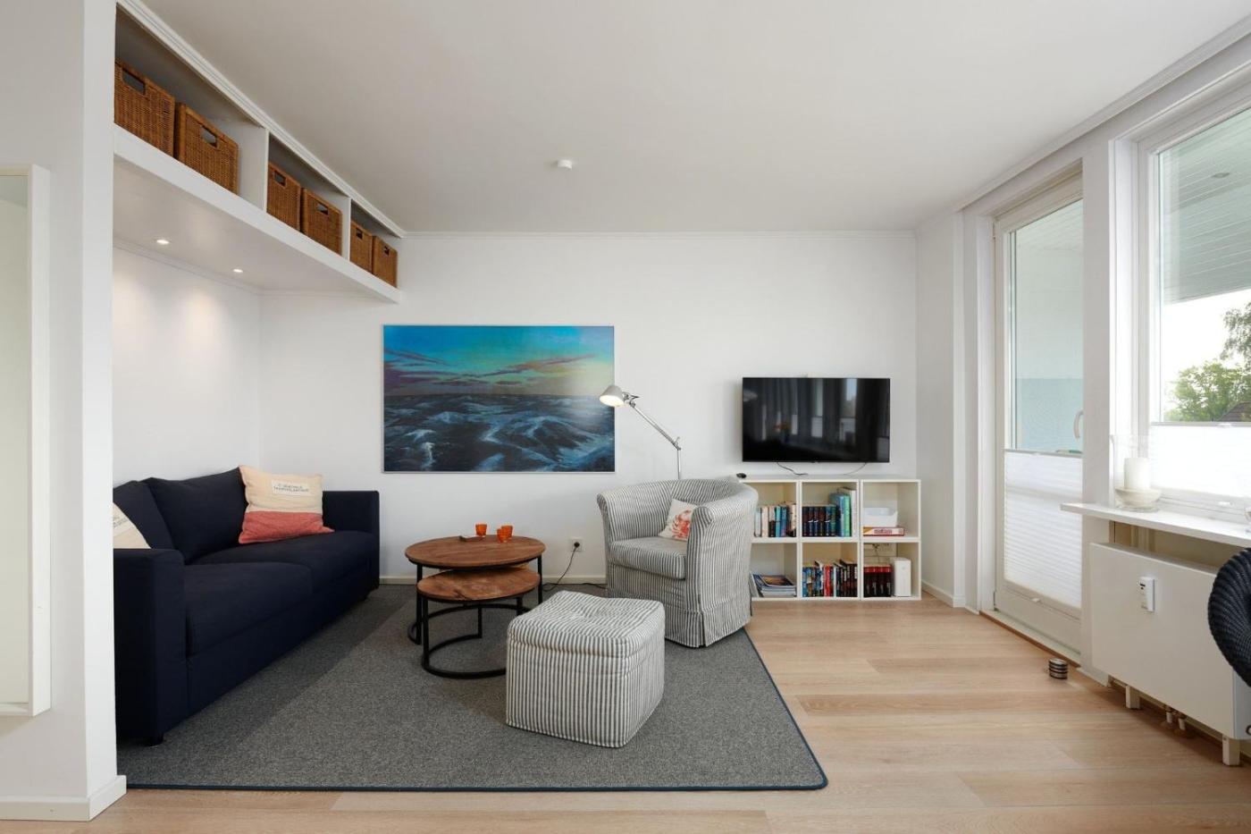 Apartment. This apartment features a kitchen, a seating area, 1 separate bedroom and 1 bathroom with a shower and a hairdryer. In the well-fitted kitchen, guests will find a stovetop, a refrigerator, a dishwasher and an oven. Boasting a balcony with sea views, this apartment also features a tea and coffee maker and a TV with cable channels. The unit has 1 bed.