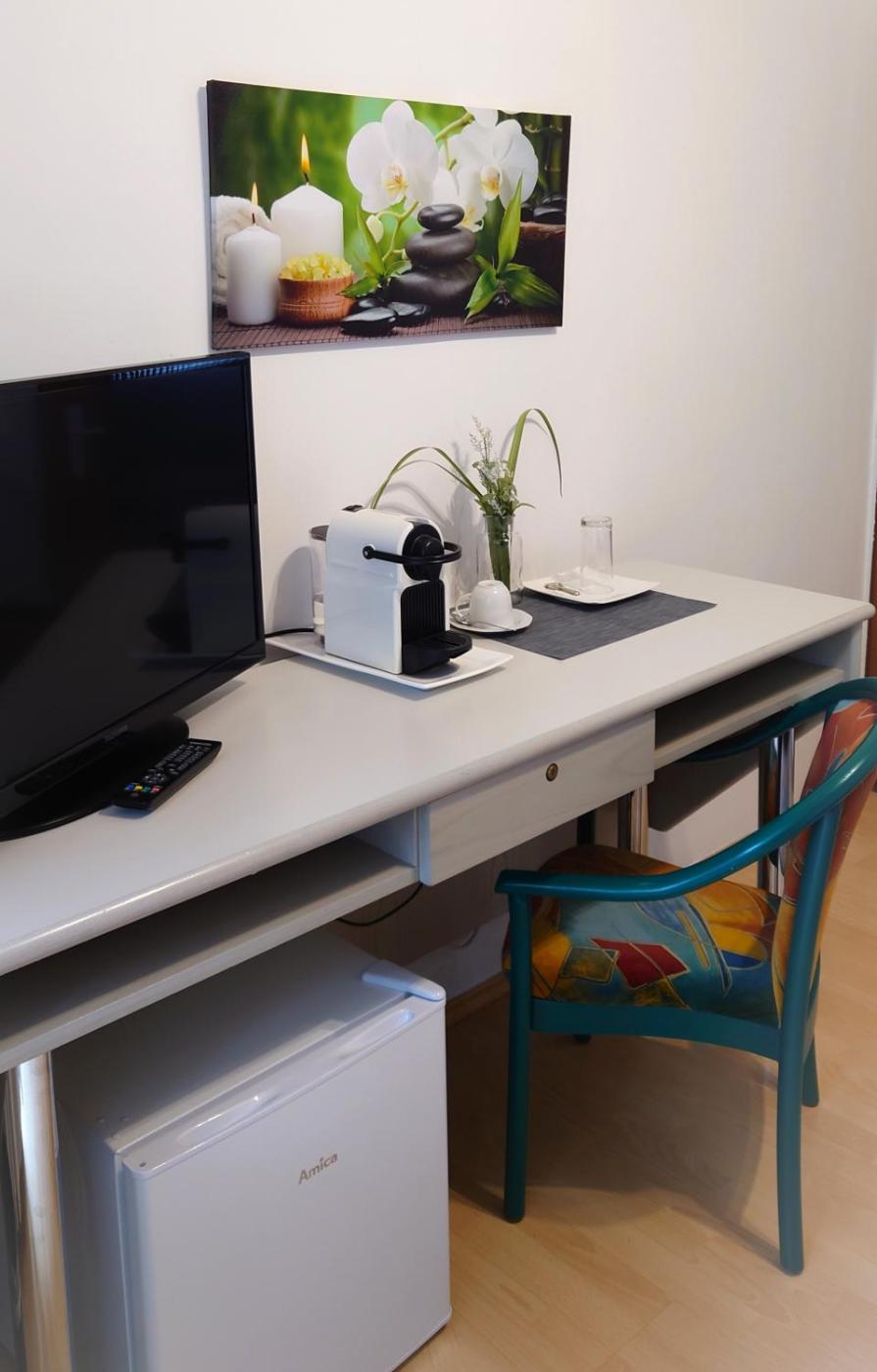 Kleines Doppelzimmer. Providing free toiletries, this double room includes a private bathroom with a shower and a hairdryer. The double room provides a TV, a tea and coffee maker, a wardrobe, a carpeted floor as well as garden views. The unit offers 1 bed.