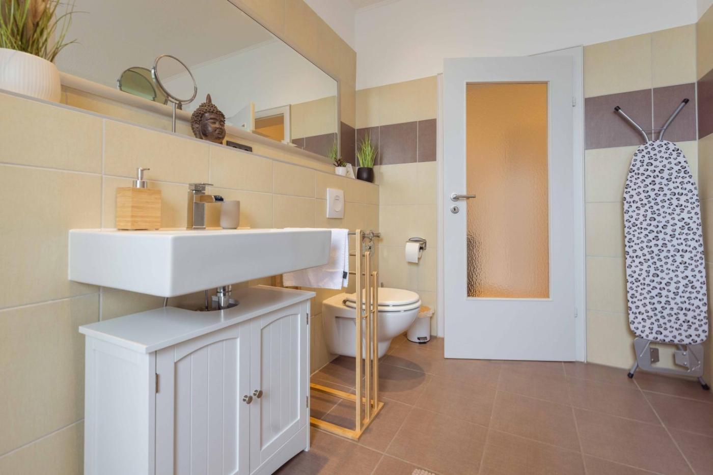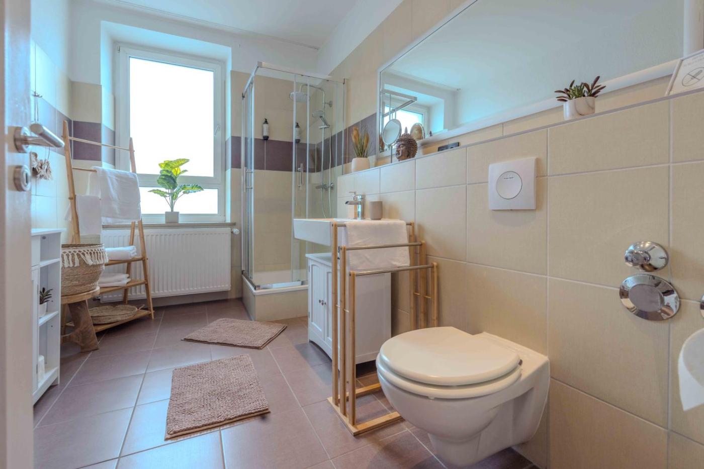 Apartment mit 1 Schlafzimmer. Boasting a private entrance, this apartment includes 1 living room, 1 separate bedroom and 1 bathroom with a shower and a hairdryer. In the fully equipped kitchen, guests will find a stovetop, a refrigerator, a dishwasher and kitchenware. The apartment offers a washing machine, soundproof walls, a tea and coffee maker, a flat-screen TV with streaming services, as well as city views. The unit has 3 beds.