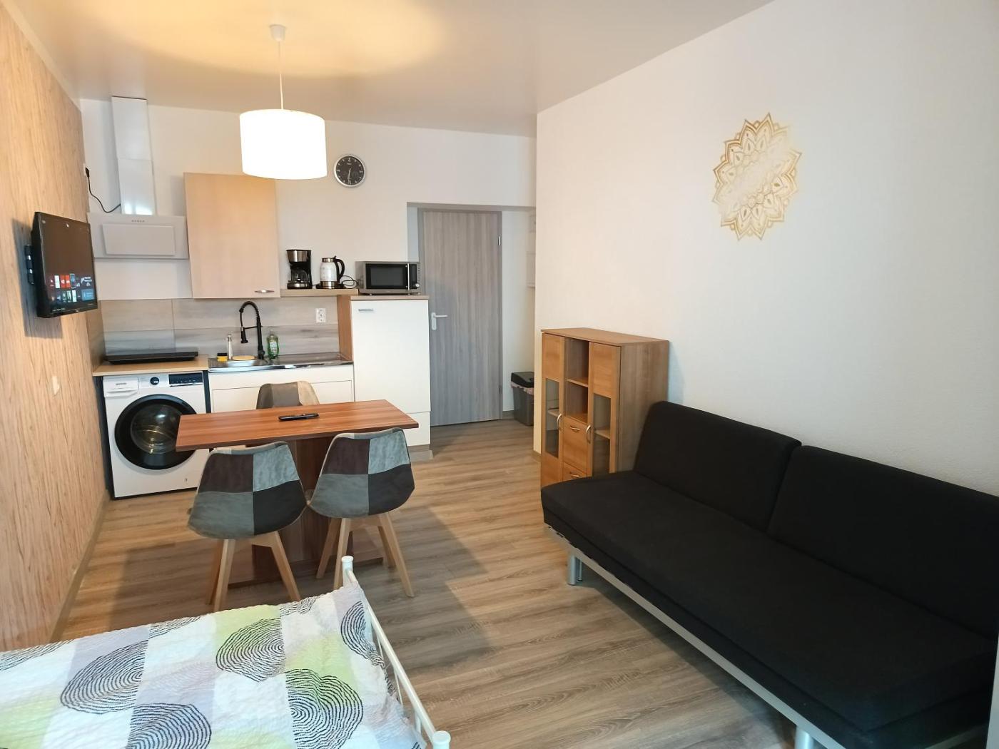 Apartment - Erdgeschoss. The apartment has 1 bedroom, 1 bathroom and a kitchenette. The apartments kitchenette is available for cooking and storing food. Boasting a balcony, this apartment also features a washing machine, heating and a flat-screen TV. The unit has 3 beds.
