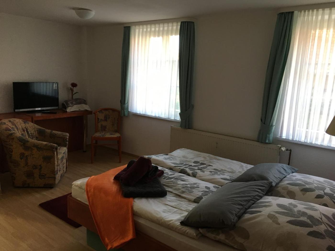 Doppelzimmer. The double room has a private bathroom fitted with a shower and a hairdryer. The spacious double room features a tea and coffee maker, a wardrobe, heating, a flat-screen TV with cable channels, as well as garden views. The unit has 1 bed. ;