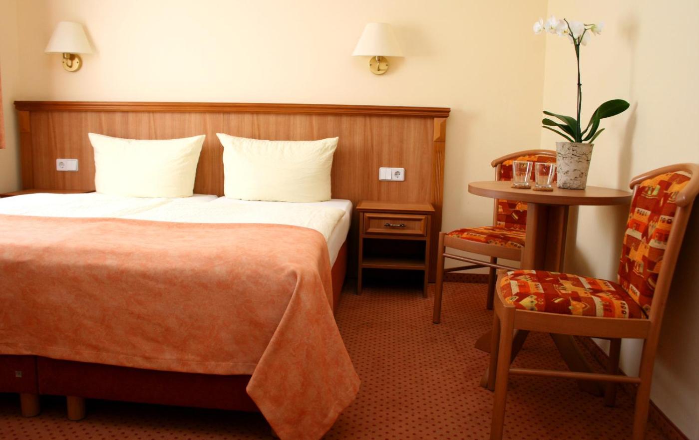 Doppelzimmer. The double room has a private bathroom fitted with a shower and a hairdryer. The double room features a flat-screen TV with satellite channels, a seating area, a wardrobe, a carpeted floor as well as garden views. The unit has 2 beds.