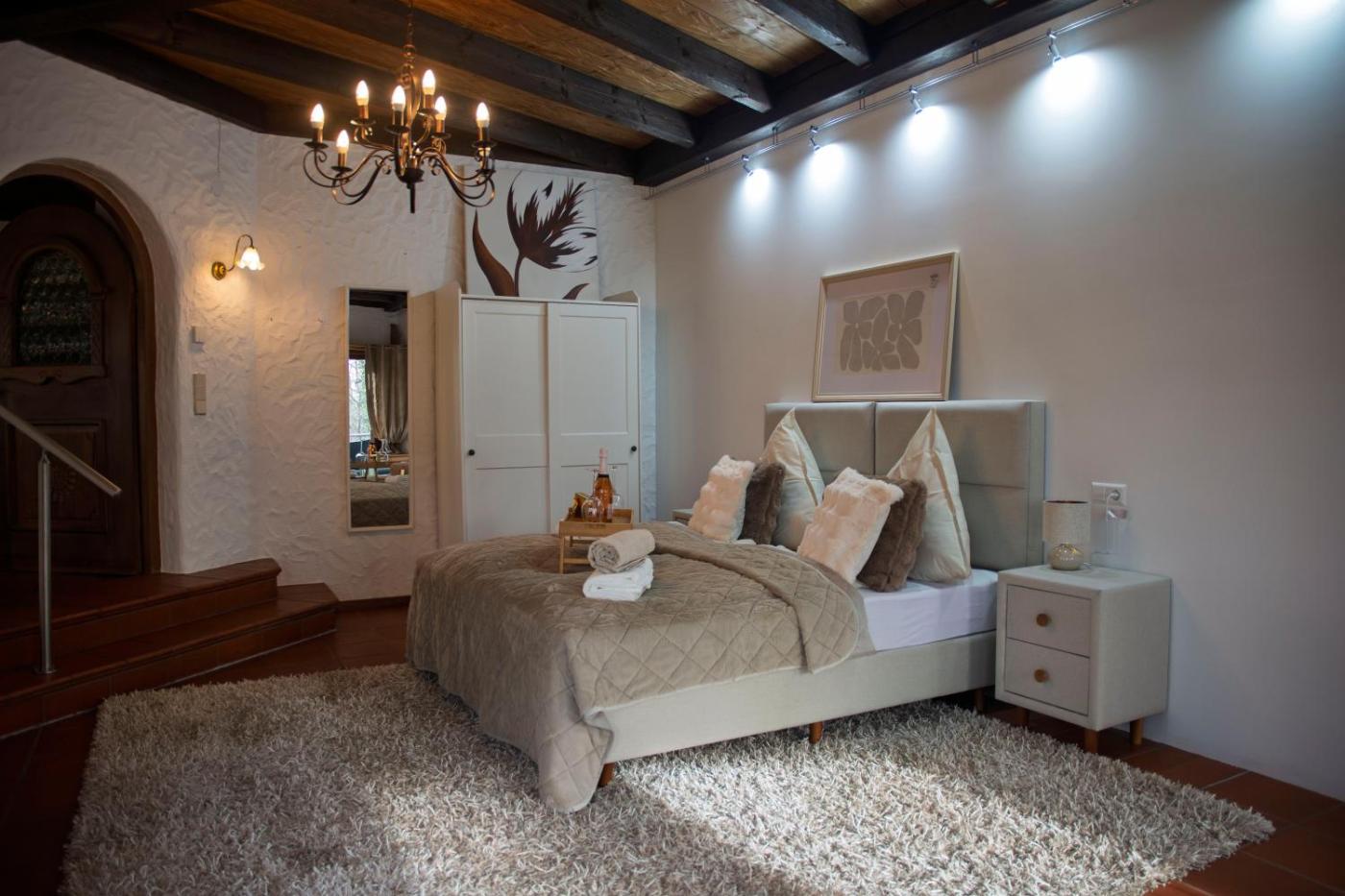 Deluxe-Apartment mit 2 Schlafzimmern und Gartenblick. The fireplace is a top feature of this apartment. Boasting a private entrance, this spacious apartment also comes with 2 bedrooms, a seating area and 1 bathroom with a shower and a hairdryer. In the fully equipped kitchen, guests will find a refrigerator, a dishwasher, kitchenware and an oven. The unit has a tea and coffee maker, garden views, a terrace and winechampagne is available for guests. The unit has 5 beds.