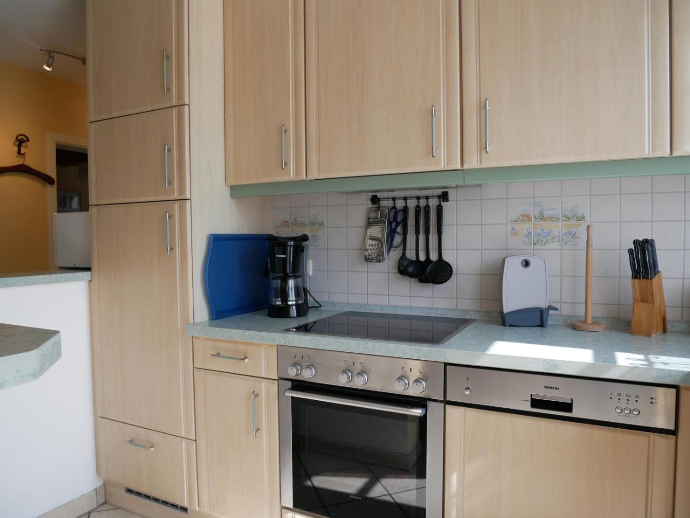 Apartment mit 2 Schlafzimmern und Dusche. This apartment provides a fireplace. This spacious apartment comprises 1 living room, 2 separate bedrooms and 1 bathroom with a shower. Guests can make meals in the kitchenette that comes with a stovetop, a refrigerator, a dishwasher and kitchenware. This apartment features a dining area, a flat-screen TV with cable channels a coffee machine and a balcony. The unit offers 3 beds.