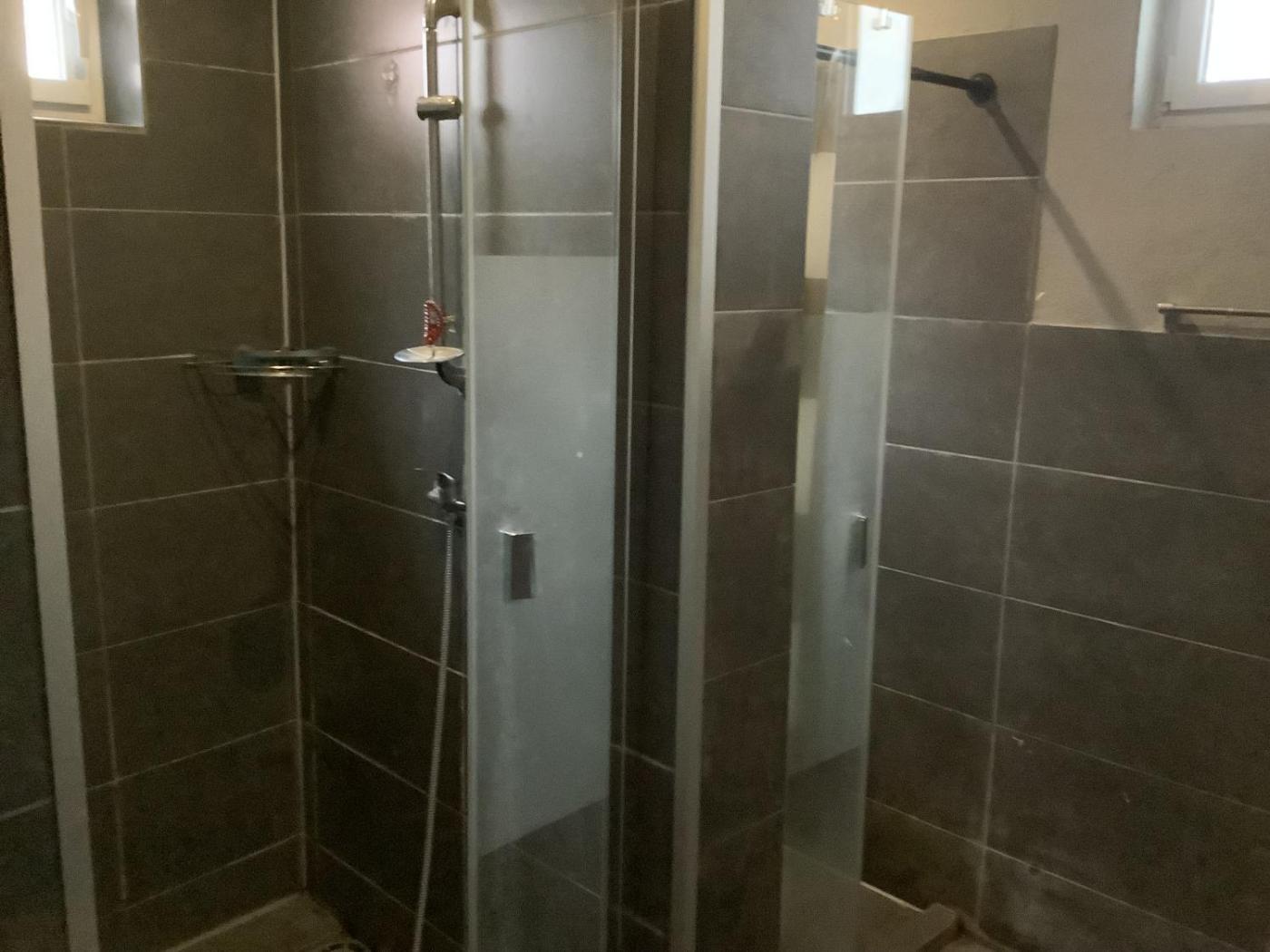 Doppelzimmer mit Gemeinschaftsbad. The double room offers an electric kettle, parquet floors, as well as a shared bathroom boasting a shower. The spacious double room features a washing machine, a seating area, a dining area, a wardrobe, as well as a flat-screen TV. The unit has 4 beds. ;