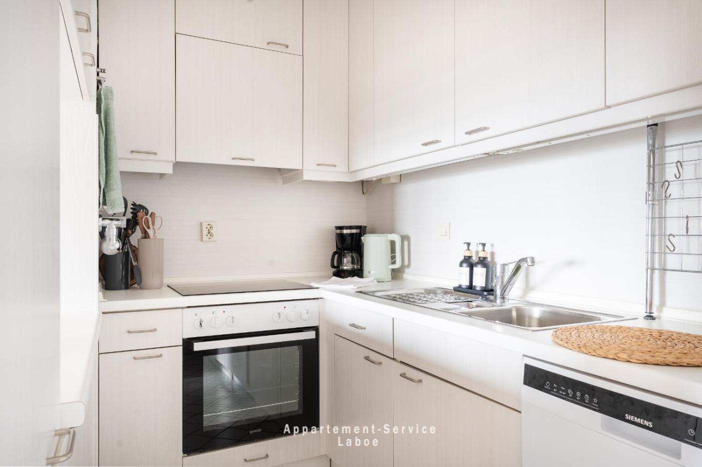 Apartment mit Meerblick. This apartment includes 1 living room, 1 separate bedroom and 1 bathroom with a shower and a hairdryer. In the well-fitted kitchen, guests will find a stovetop, a refrigerator, a dishwasher and kitchenware. Boasting a balcony with sea views, this apartment also offers a washing machine and a TV. The unit has 2 beds.