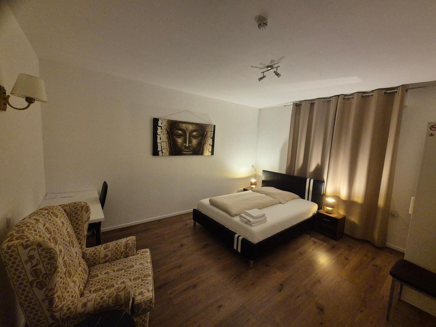 Standard Doppelzimmer. Guests can make meals in the kitchen that is equipped with a stovetop, a refrigerator, a dishwasher and kitchenware. The double room is furnished with a desk and a seating area and provides a washing machine and a private entrance. The unit offers 1 bed.