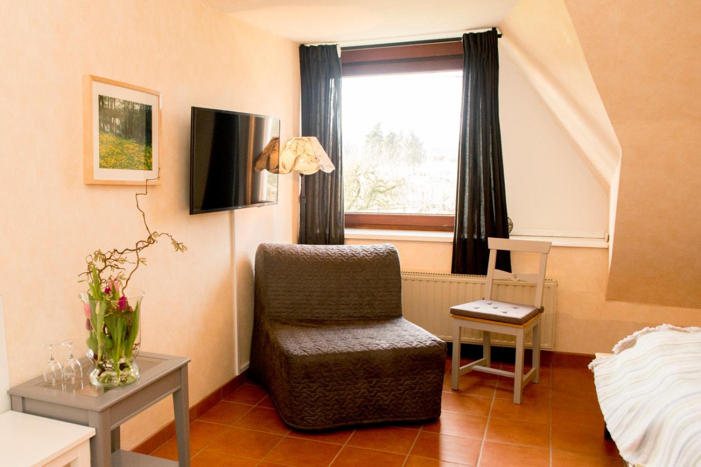 Doppelzimmer. The double room has a private bathroom fitted with a shower and a hairdryer. The double room features a flat-screen TV with satellite channels, a seating area, a wardrobe, an electric kettle as well as garden views. The unit has 1 bed. ;