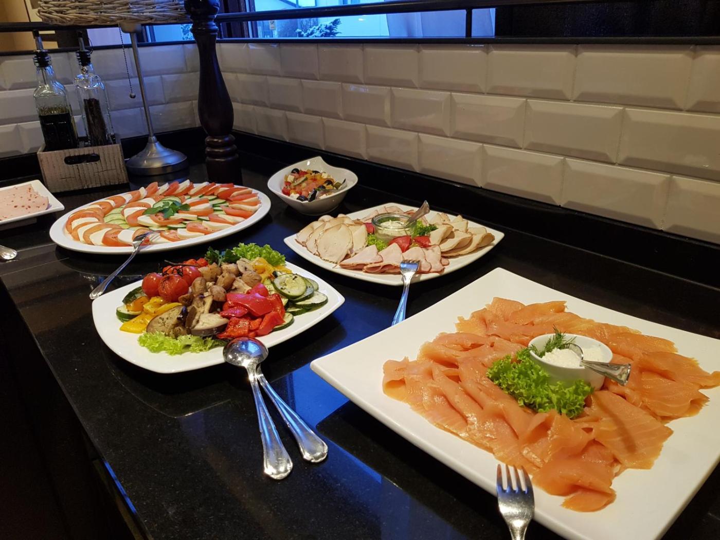 Jeden Morgen wird ein reichhaltiges Frühstücksbuffet serviert. Traditionelle deutsche Küche wird in der gemütlichen Lounge mit Kamin oder im Sommer auf der Gartenterrasse serviert.