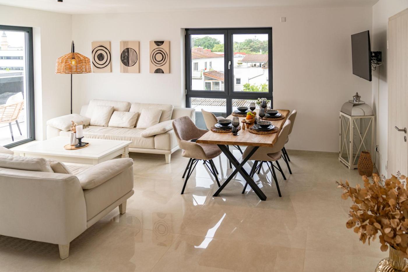 Doppelzimmer mit Balkon. The spacious double room features a private bathroom, a washing machine, a tea and coffee maker, as well as a seating area with a flat-screen TV. The well-equipped kitchen has a stovetop, a refrigerator, kitchenware and an oven. There is a dining area, a wardrobe and a terrace and complimentary chocolate is featured for guests. The unit offers 2 beds. ;
