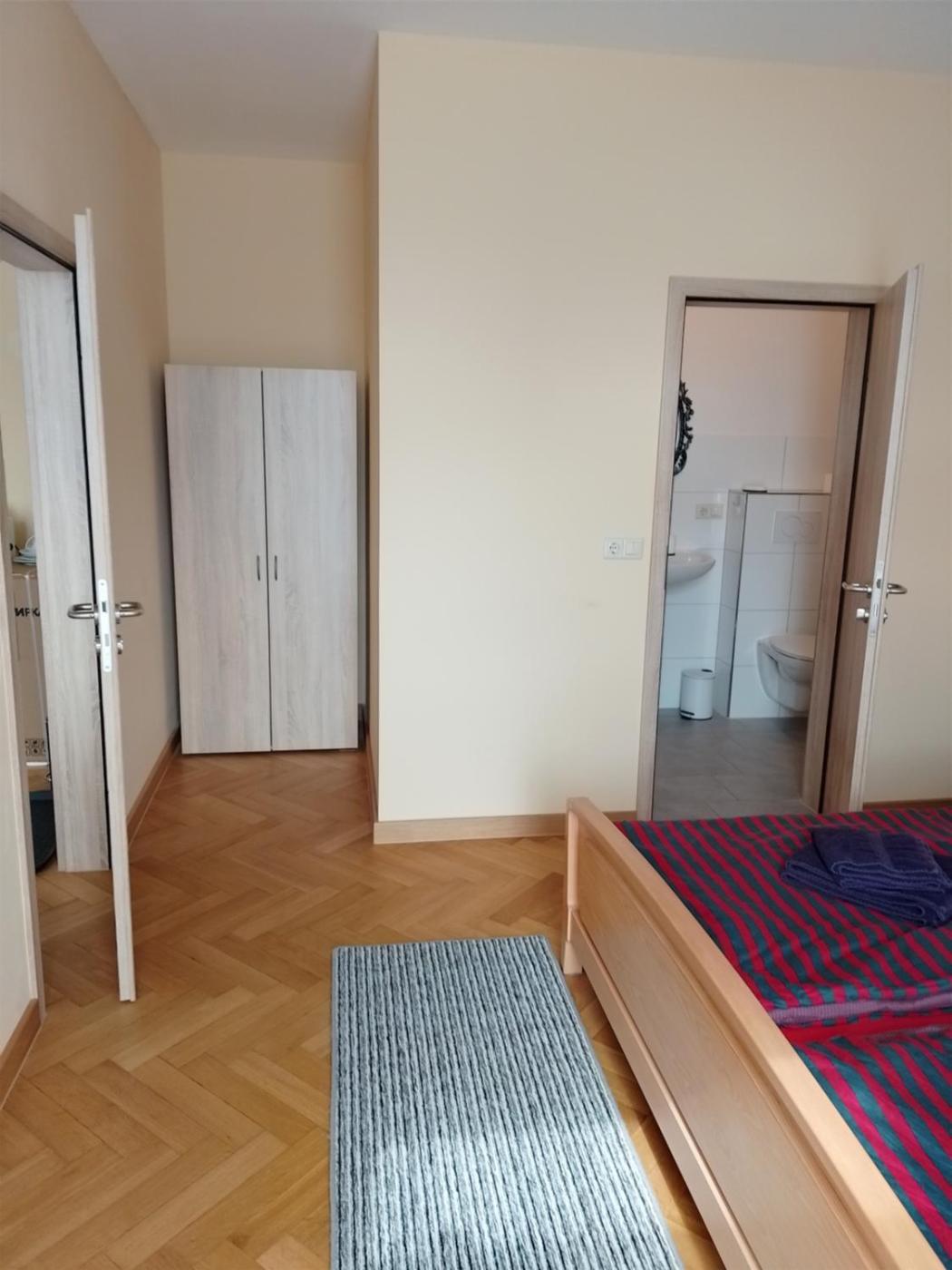 Großes Zweibettzimmer. In the fully equipped kitchen, guests will find a refrigerator, kitchenware, an oven and a microwave. The spacious twin room features soundproof walls and a tea and coffee maker, as well as a private bathroom boasting a shower. The unit has 2 beds. ;