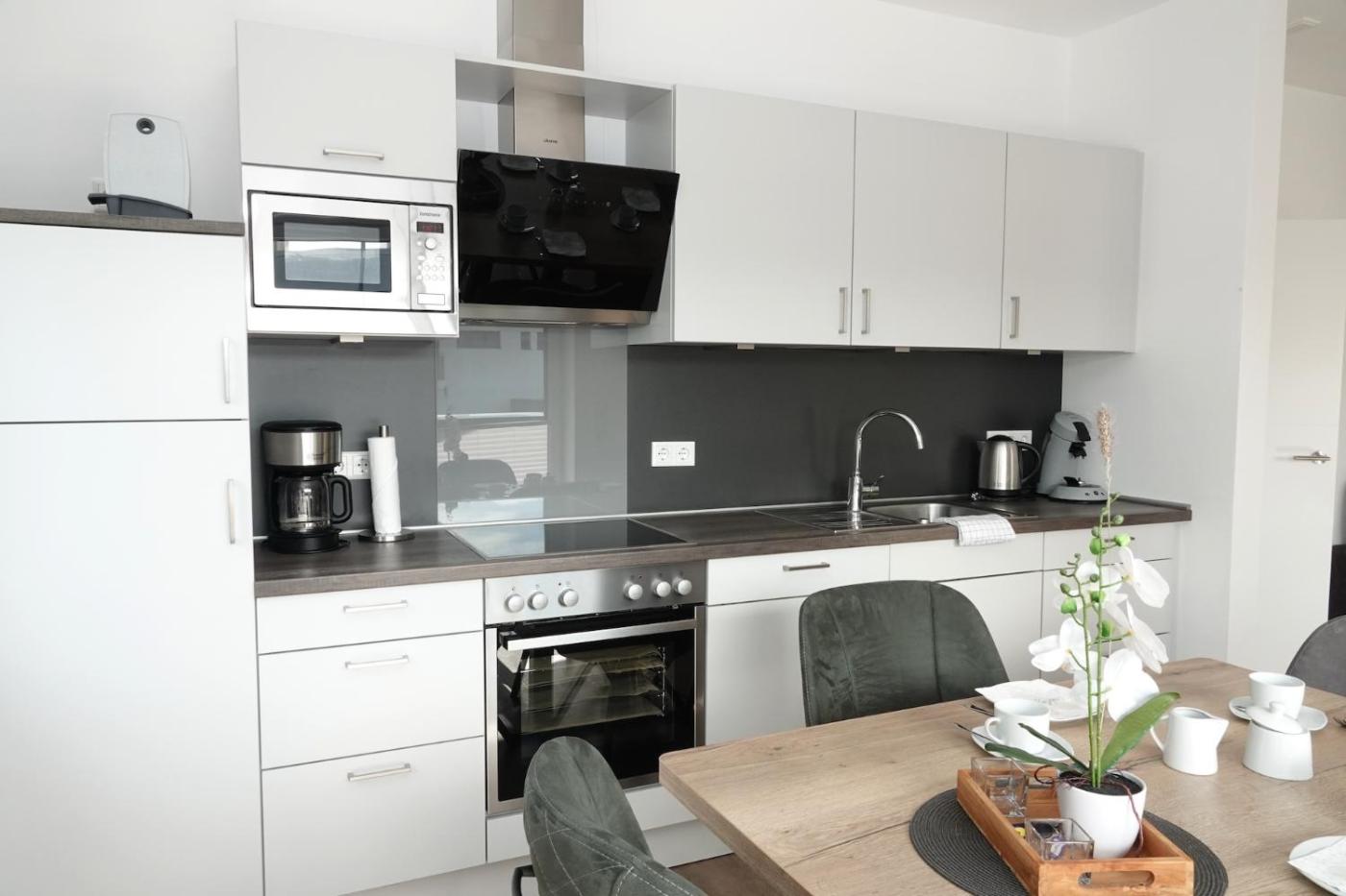 Apartment mit Balkon. This spacious apartment includes 1 living room, 2 separate bedrooms and 1 bathroom with a shower and a hairdryer. In the well-equipped kitchen, guests will find a stovetop, a refrigerator, a dishwasher and kitchenware. Boasting a balcony with garden views, this apartment also offers a washing machine and a TV with cable channels. The unit has 3 beds.