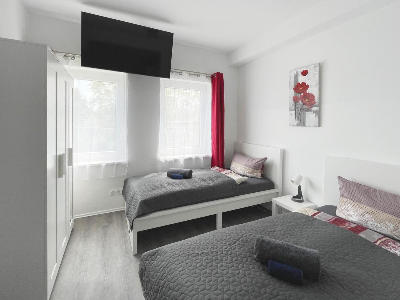 Apartment mit 2 Schlafzimmern. Diese Ferienwohnung verfügt über einen eigenen Eingang, eine Küchenzeile, 2 Schlafzimmer und 1 Bad mit einer Dusche sowie einem Haartrockner. Zur komplett ausgestatteten Küchenzeile gehören ein Kochfeld, ein Kühlschrank, Küchenutensilien und eine Mikrowelle. Die Ferienwohnung verfügt über Tee- und Kaffeezubehör, einen Kleiderschrank, Heizung sowie einen Flachbild-Sat-TV. Die Wohneinheit ist mit 2 Betten ausgestattet. ;