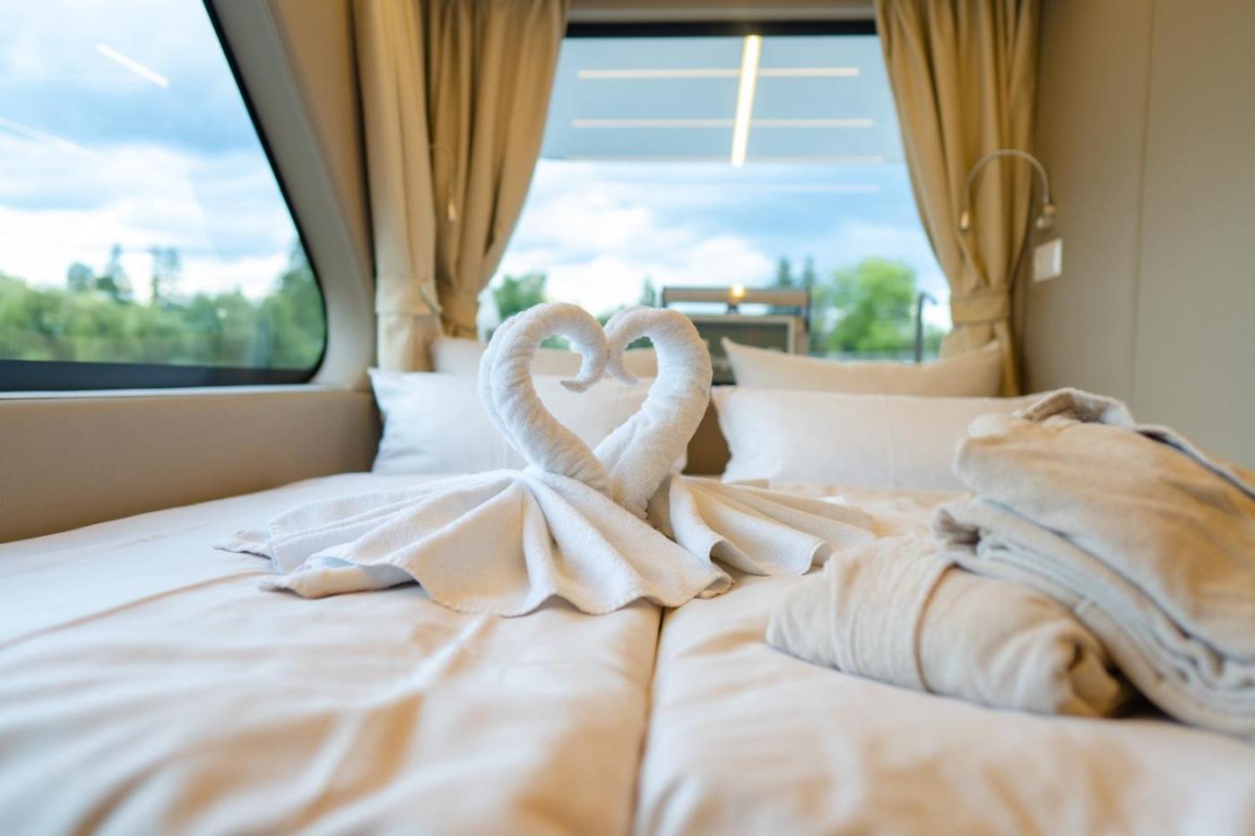 Schwimmendes Luxboat. Boasting a private entrance, this mobile home also features 1 living room, 2 separate bedrooms and 1 bathroom with a shower. In the fully equipped kitchenette, guests will find a stovetop, a refrigerator, kitchenware and a toaster. Featuring a terrace with lake views, this mobile home also features a coffee machine and a flat-screen TV. The unit has 2 beds.