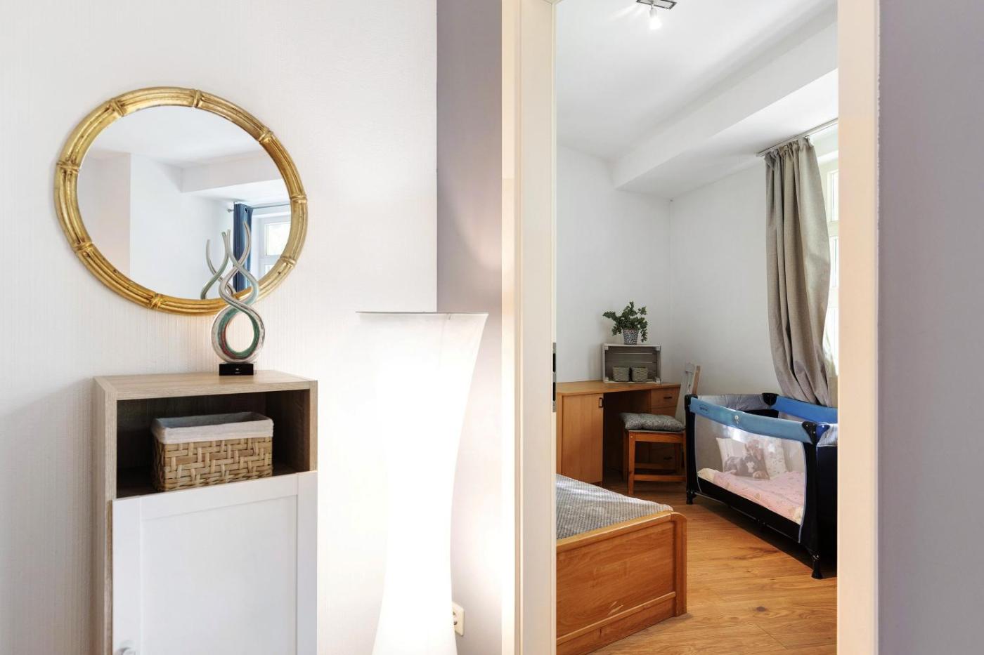 Vierbettzimmer mit Dusche. Featuring free toiletries, this quadruple room includes a private bathroom with a shower and a hairdryer. In the fully equipped kitchen, guests will find a dishwasher, kitchenware, an oven and a microwave. This quadruple room features an electric kettle, a TV with streaming services and garden views. The unit has 2 beds. ;