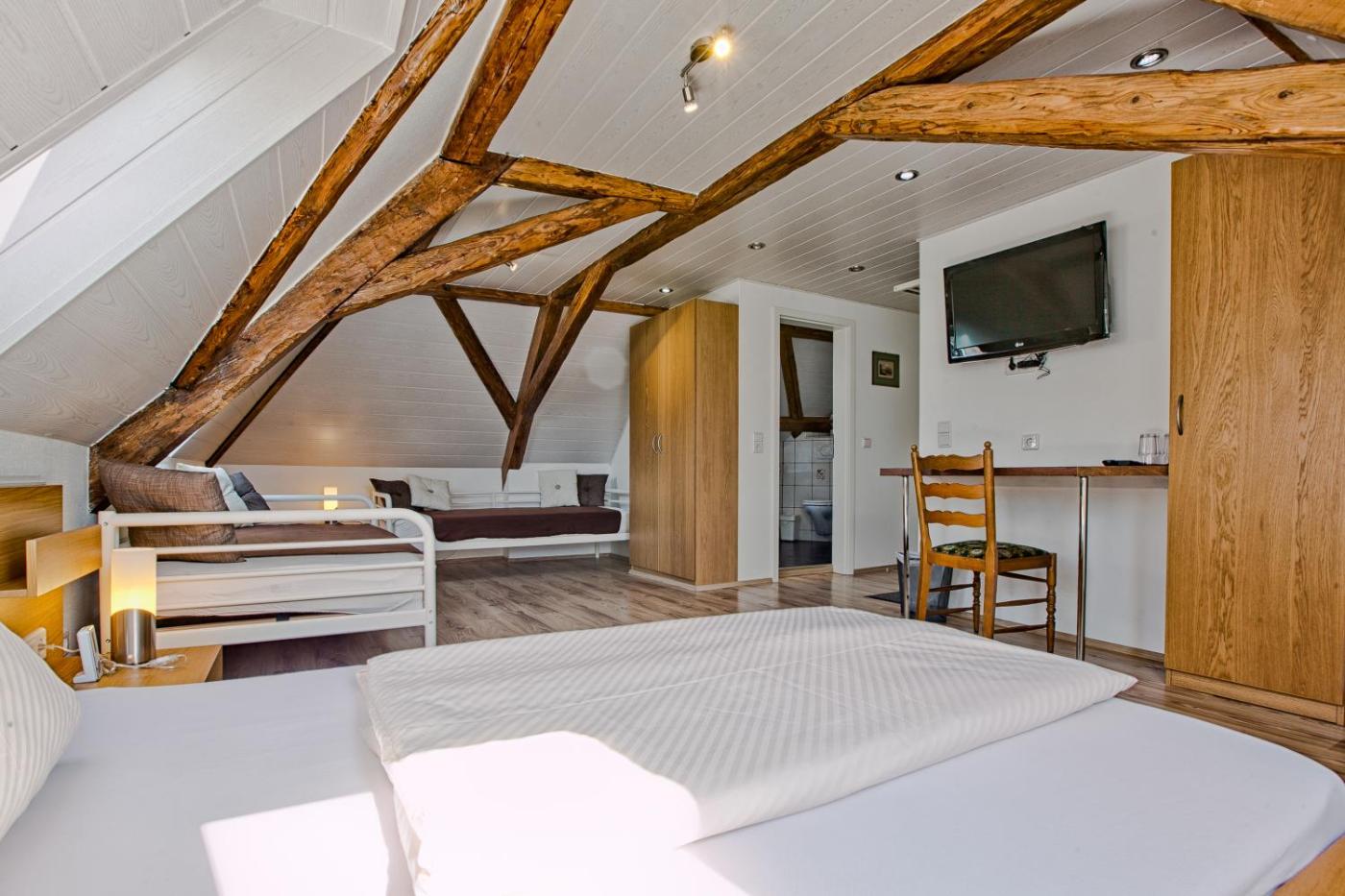 In der Unterkunft Landgasthaus Kreuz beim Tom sind die Zimmer ausgestattet mit einem Schreibtisch, einem Flachbild-TV, einem eigenen Badezimmer, Bettwäsche und Handtüchern. Die Wohneinheiten verfügen über einen Kleiderschrank.