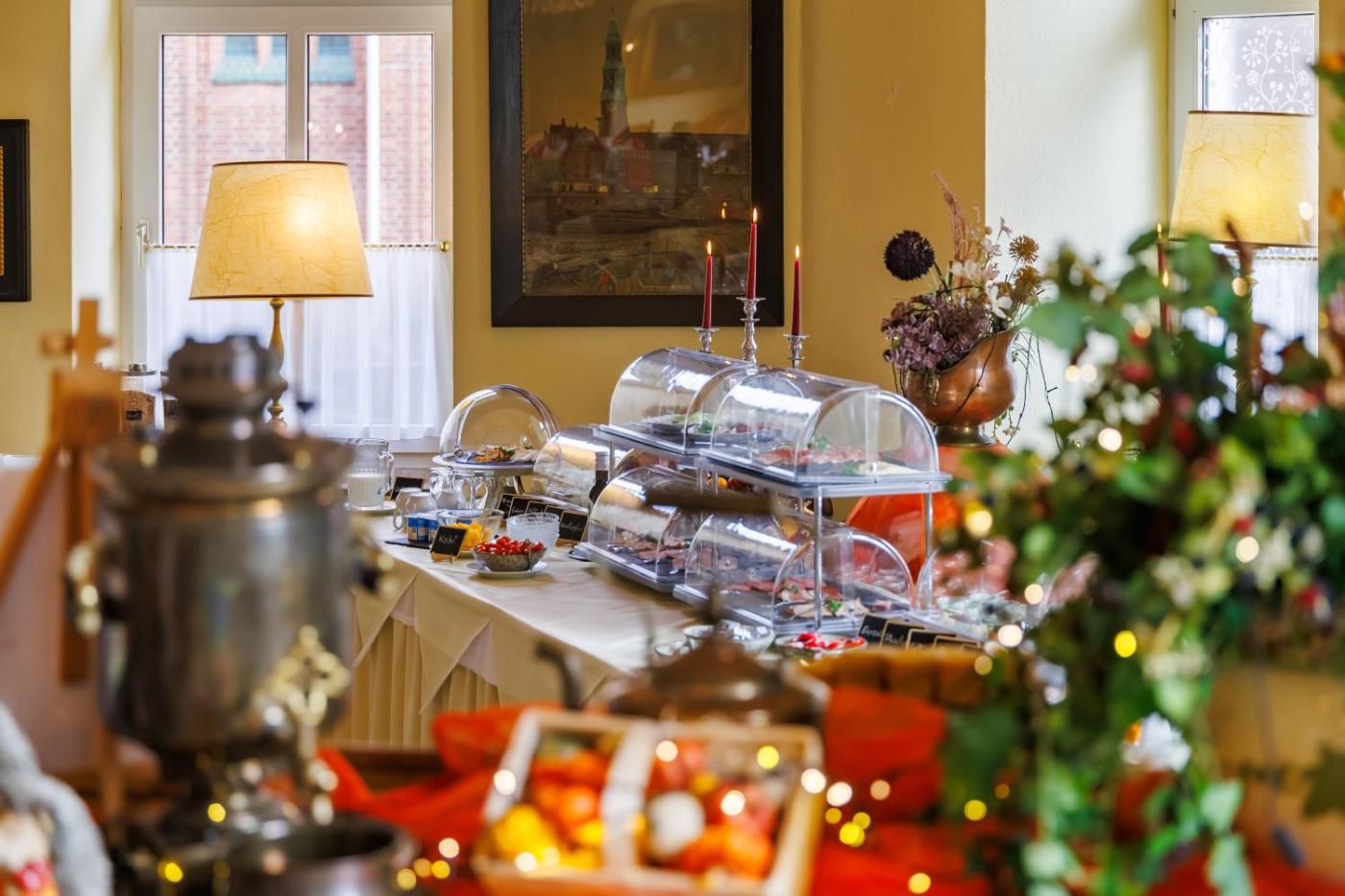 Jeden Morgen stärken Sie sich an einem reichhaltigen Frühstücksbuffet. Eine Bäckerei und ein Restaurant erreichen Sie in 5 Gehminuten vom Hotel Fürstenhof.