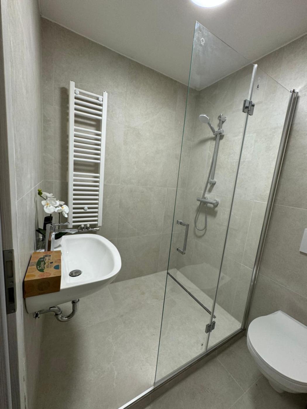 Doppelzimmer. The double room features a washing machine and heating, as well as a shared bathroom boasting a hairdryer. This double room offers a flat-screen TV. The unit has 2 beds.